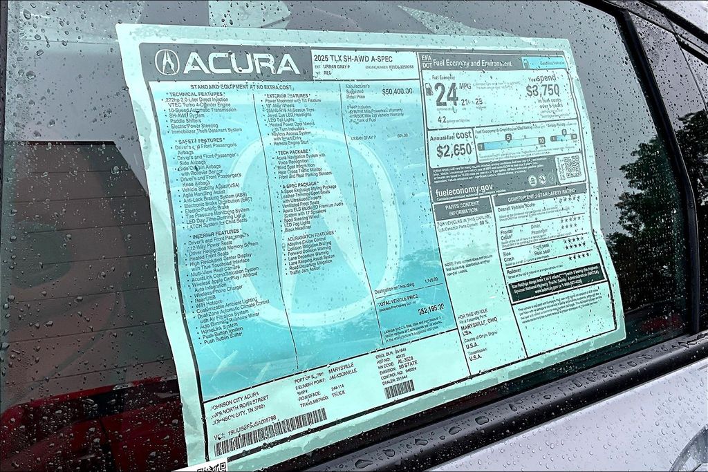 2025 Acura TLX A-Spec Package SH-AWD Modern Steel Metallic 21/29 City/Highway MPG 4D Sedan AWD 2.0L DOHC 10-Speed Automatic