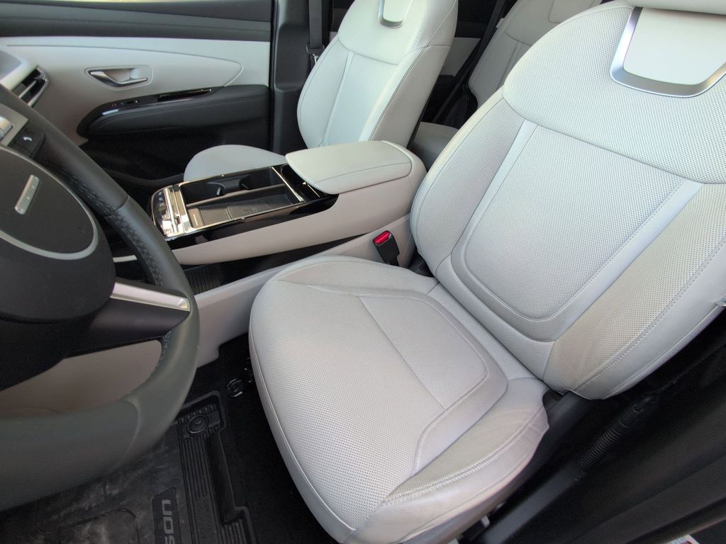 Option Group 01, Tucson Hybrid Limited, 4D Sport Utility, 1.6L I4 DGI Hybrid Turbocharged DOHC 16V LEV3-SULEV30, 6-Speed Automatic, AWD, Amazon Gray, Gray/Green 3-Tone Leather, 19" Alloy Wheels, 4-Wheel Disc Brakes, 8 Speakers, ABS brakes, Air Conditioning, All Season Fitted Liners, Alloy wheels, AM/FM radio: SiriusXM, Apple CarPlay & Android Auto, Auto High-beam Headlights, Auto-dimming Rear-View mirror, Automatic temperature control, Brake assist, Bumpers: body-color, Cargo Cover, Cargo Net, Cargo Tray, Carpeted Floor Mats, Delay-off headlights, Driver door bin, Driver vanity mirror, Dual front impact airbags, Dual front side impact airbags, Electronic Stability Control, Emergency communication system: Bluelink+, First Aid Kit, Four wheel independent suspension, Front anti-roll bar, Front Bucket Seats, Front Center Armrest, Front dual zone A/C, Front reading lights, Fully automatic headlights, Garage door transmitter: HomeLink, Heads-Up Display, Heated & Ventilated Front Bucket Seats, Heated door mirrors, Heated front seats, Heated rear seats, Heated steering wheel, Illuminated Door Sill Plates, Illuminated entry, Leather steering wheel, Leather-Trimmed Seat Trim, Low tire pressure warning, Memory seat, Navigation System, Occupant sensing airbag, Outside temperature display, Overhead airbag, Overhead console, Panic alarm, Passenger door bin, Passenger vanity mirror, Power door mirrors, Power driver seat, Power Liftgate, Power moonroof, Power passenger seat, Power steering, Power windows, Radio data system, Radio: Bose Premium w/AM/FM/HD Audio System, Rain sensing wipers, Rear anti-roll bar, Rear reading lights, Rear seat center armrest, Rear side impact airbag, Rear window defroster, Rear window wiper, Remote keyless entry, Roadside Assistance Kit, Security system, Speed control, Split folding rear seat, Spoiler, Steering wheel mounted audio controls, Tachometer, Telescoping steering wheel, Tilt steering wheel, Traction control, Trip computer, Turn signal indicator mirrors, Variably intermittent wipers, Ventilated front seats, and Wheel Locks.