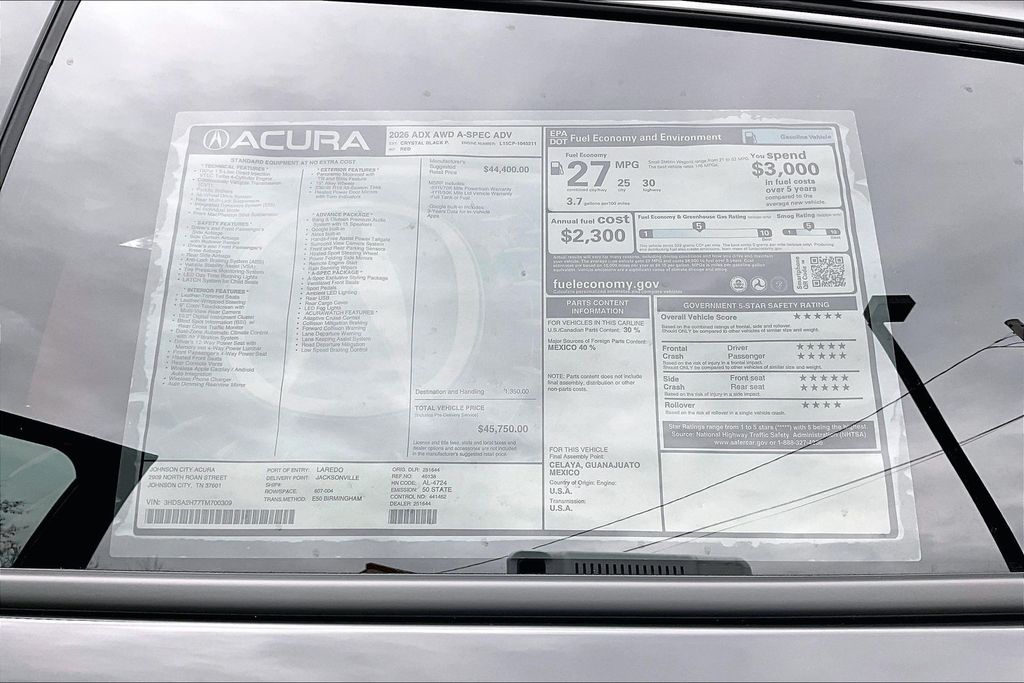 2026 Acura ADX A-Spec Advance Package Crystal Black Pearl 26/30 City/Highway MPG 4D Sport Utility AWD 1.5L I4 Turbocharged DOHC 16V 190hp CVT