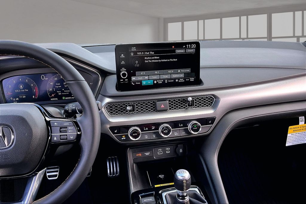 16 Speakers, 18" Aluminum Alloy Wheels, 4-Wheel Disc Brakes, ABS brakes, Adaptive suspension, Air Conditioning, Alloy wheels, AM/FM radio: SiriusXM, Apple CarPlay/Android Auto, Auto High-beam Headlights, Auto-dimming Rear-View mirror, Automatic temperature control, Brake assist, Bumpers: body-color, Compass, Delay-off headlights, Driver door bin, Driver vanity mirror, Dual front impact airbags, Dual front side impact airbags, Electronic Stability Control, Emergency communication system: AcuraLink (subscription required), Four wheel independent suspension, Front anti-roll bar, Front Bucket Seats, Front Center Armrest, Front dual zone A/C, Front fog lights, Front reading lights, Fully automatic headlights, Heads-Up Display, Heated door mirrors, Heated Front Bucket Seats, Heated front seats, Illuminated entry, Knee airbag, Lane departure: Lane Keeping Assist System (LKAS) active, Leather Shift Knob, Leather steering wheel, Low tire pressure warning, Memory seat, Microsuede-Trimmed Front Seats with Exclusive Stitch, Occupant sensing airbag, Outside temperature display, Overhead airbag, Overhead console, Panic alarm, Passenger door bin, Passenger vanity mirror, Power door mirrors, Power driver seat, Power moonroof, Power passenger seat, Power steering, Power windows, Radio data system, Radio: ELS Studio 3D Premium Audio System, Rain sensing wipers, Rear anti-roll bar, Rear seat center armrest, Rear side impact airbag, Rear window defroster, Remote keyless entry, Security system, Speed control, Speed-sensing steering, Speed-Sensitive Wipers, Split folding rear seat, Spoiler, Steering wheel mounted audio controls, Tachometer, Telescoping steering wheel, Tilt steering wheel, Traction control, Trip computer, Turn signal indicator mirrors, and Variably intermittent wipers.