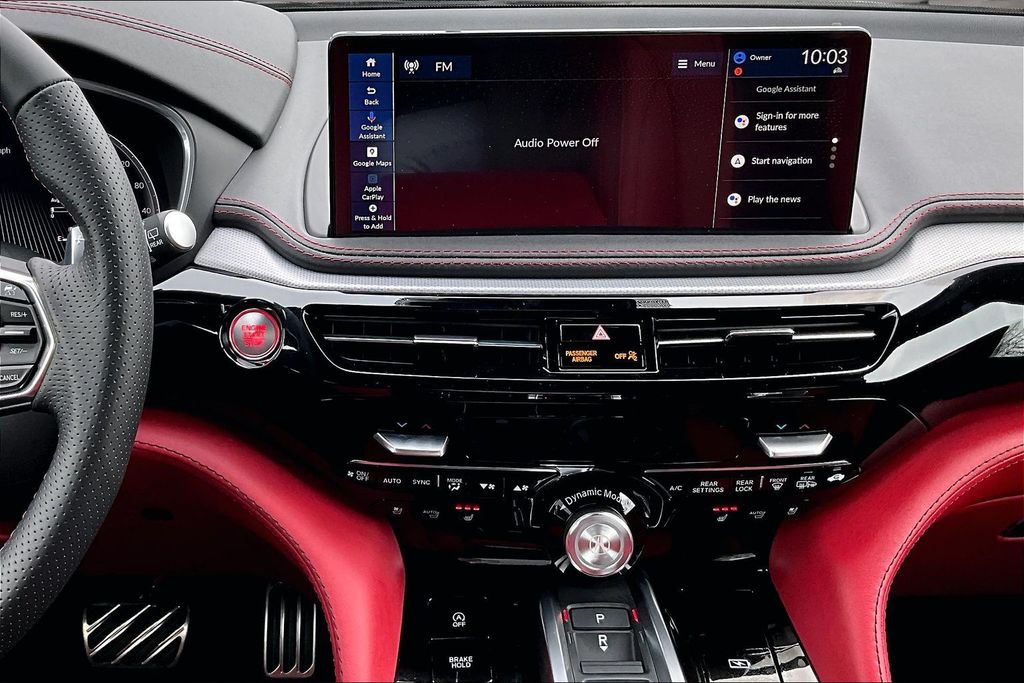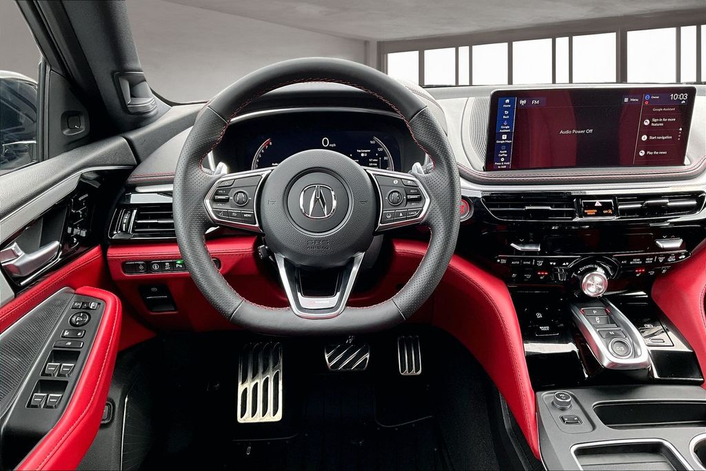 19 Speakers, 3rd row seats: split-bench, 4-Wheel Disc Brakes, ABS brakes, Air Conditioning, Alloy wheels, AM/FM radio, Anti-whiplash front head restraints, Apple CarPlay/Android Auto, Audio memory, Auto High-beam Headlights, Auto tilt-away steering wheel, Auto-dimming Rear-View mirror, Automatic temperature control, Brake assist, Bumpers: body-color, Compass, Delay-off headlights, Driver door bin, Driver vanity mirror, Dual front impact airbags, Dual front side impact airbags, Electronic Stability Control, Emergency communication system: AcuraLink, Exterior Parking Camera Rear, Four wheel independent suspension, Front anti-roll bar, Front Bucket Seats, Front Center Armrest, Front dual zone A/C, Front fog lights, Front reading lights, Fully automatic headlights, Garage door transmitter: HomeLink, Heated and Ventilated Front Sport Seats, Heated door mirrors, Heated front seats, HVAC memory, Illuminated entry, Knee airbag, Lane departure: Lane Keeping Assist System (LKAS) active, Leather steering wheel, Low tire pressure warning, Memory seat, Navigation system: Google built-in (3-Years Unlimited Data Plan for In-Vehicle Apps), Occupant sensing airbag, Outside temperature display, Overhead airbag, Overhead console, Panic alarm, Passenger door bin, Passenger vanity mirror, Perforated Premium Milano Leather and Ultrasuede Seats, Power door mirrors, Power driver seat, Power Liftgate, Power moonroof, Power passenger seat, Power steering, Power windows, Premium audio system: Acura/ELS Studio 3D, Radio data system, Radio: Bang & Olufsen Premium Audio System, Rain sensing wipers, Rear air conditioning, Rear anti-roll bar, Rear reading lights, Rear seat center armrest, Rear window defroster, Rear window wiper, Remote keyless entry, Security system, Speed control, Speed-sensing steering, Speed-Sensitive Wipers, Split folding rear seat, Spoiler, Sport steering wheel, Steering wheel memory, Steering wheel mounted audio controls, Tachometer, Telescoping steering wheel, Tilt steering wheel, Traction control, Trip computer, Turn signal indicator mirrors, Variably intermittent wipers, Ventilated front seats, and Wheels: 20" x 9J Aluminum Alloy.