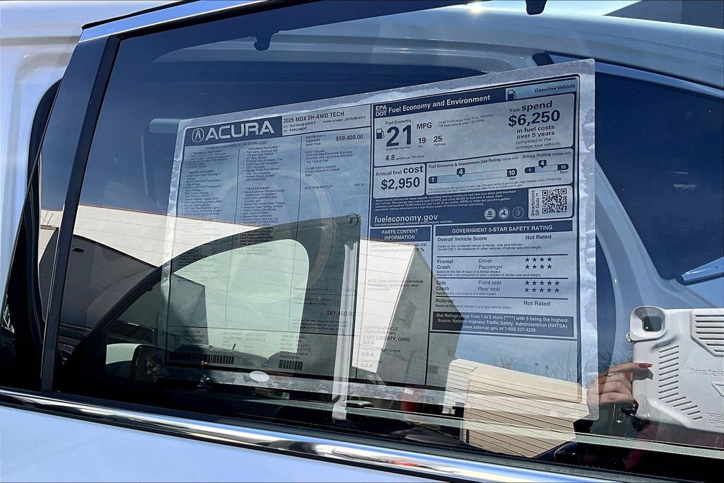 2026 Acura MDX Technology Package SH-AWD Platinum White Pearl 19/25 City/Highway MPG 4D Sport Utility AWD 3.5L V6 SOHC i-VTEC 24V 10-Speed Automatic