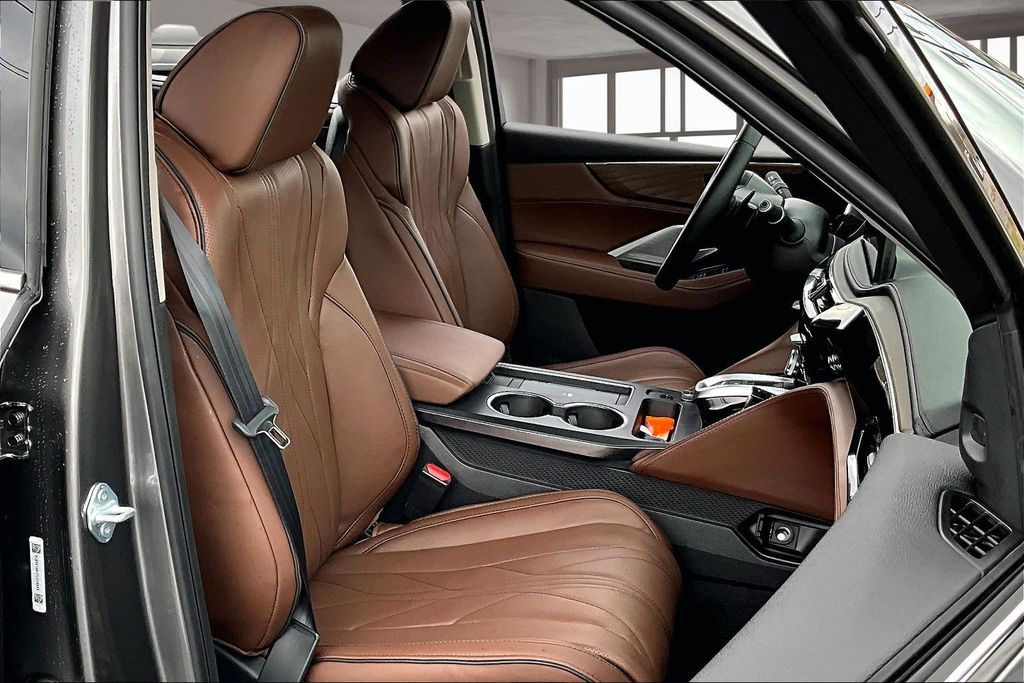 19 Speakers, 3rd row seats: split-bench, 4-Wheel Disc Brakes, ABS brakes, Adaptive suspension, Air Conditioning, Alloy wheels, AM/FM radio, Anti-whiplash front head restraints, Apple CarPlay/Android Auto, Audio memory, Auto High-beam Headlights, Auto tilt-away steering wheel, Auto-dimming Rear-View mirror, Automatic temperature control, Brake assist, Bumpers: body-color, Compass, Curvilinear Quilted Perforated Premium Milano Leather Seats, Delay-off headlights, Driver door bin, Driver vanity mirror, Dual front impact airbags, Dual front side impact airbags, Electronic Stability Control, Emergency communication system: AcuraLink, Exterior Parking Camera Rear, Four wheel independent suspension, Front anti-roll bar, Front Bucket Seats, Front Center Armrest, Front dual zone A/C, Front fog lights, Front reading lights, Fully automatic headlights, Garage door transmitter: HomeLink, Heads-Up Display, Heated and Ventilated Front Sport Seats, Heated door mirrors, Heated front seats, Heated rear seats, Heated steering wheel, HVAC memory, Illuminated entry, Knee airbag, Lane departure: Lane Keeping Assist System (LKAS) active, Leather steering wheel, Low tire pressure warning, Memory seat, Navigation system: Google built-in (3-Years Unlimited Data Plan for In-Vehicle Apps), Occupant sensing airbag, Outside temperature display, Overhead airbag, Overhead console, Panic alarm, Passenger door bin, Passenger vanity mirror, Power door mirrors, Power driver seat, Power Liftgate, Power moonroof, Power passenger seat, Power steering, Power windows, Premium audio system: Acura/ELS Studio 3D, Radio data system, Radio: Bang & Olufsen Premium Audio System, Rain sensing wipers, Rear air conditioning, Rear anti-roll bar, Rear reading lights, Rear seat center armrest, Rear window defroster, Rear window wiper, Remote keyless entry, Security system, Speed control, Speed-sensing steering, Speed-Sensitive Wipers, Split folding rear seat, Spoiler, Steering wheel memory, Steering wheel mounted audio controls, Tachometer, Telescoping steering wheel, Tilt steering wheel, Traction control, Trip computer, Turn signal indicator mirrors, Variably intermittent wipers, Ventilated front seats, and Wheels: 20" x 9J Aluminum Alloy.