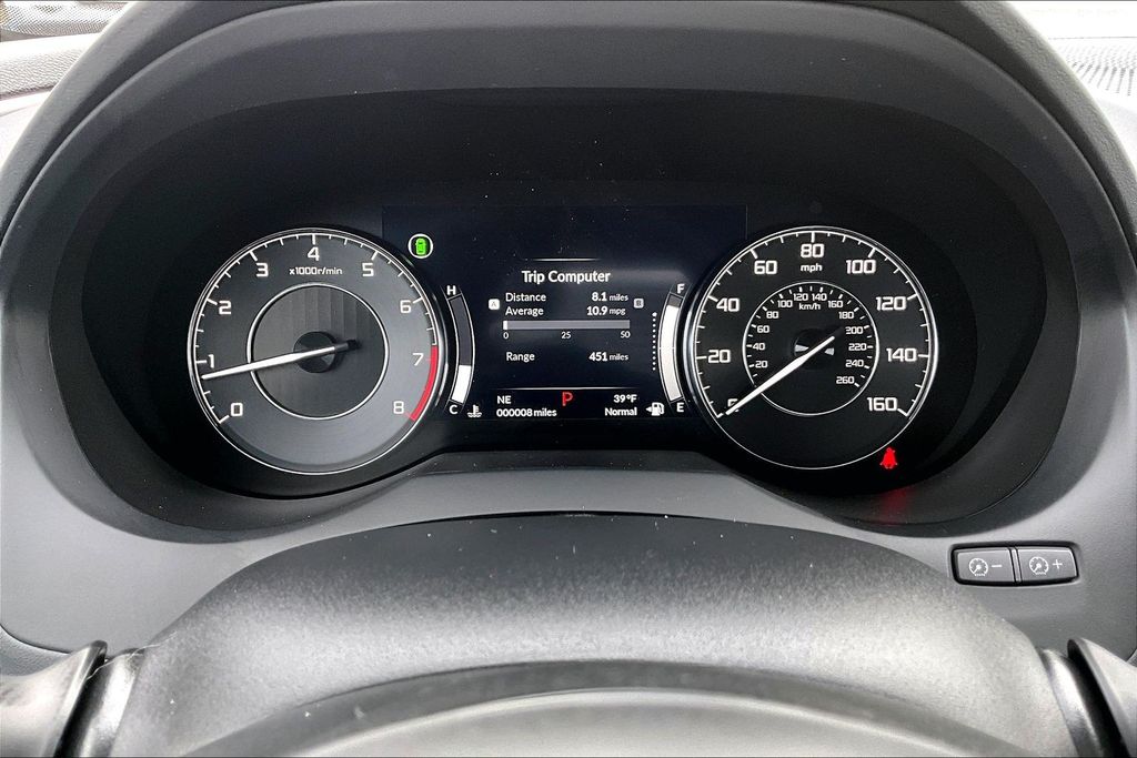 12 Speakers, 4-Wheel Disc Brakes, ABS brakes, Air Conditioning, Alloy wheels, AM/FM radio: SiriusXM, Apple CarPlay/Android Auto, Auto High-beam Headlights, Auto-dimming Rear-View mirror, Automatic temperature control, Brake assist, Bumpers: body-color, Compass, Delay-off headlights, Driver door bin, Driver vanity mirror, Dual front impact airbags, Dual front side impact airbags, Electronic Stability Control, Emergency communication system: AcuraLink, Exterior Parking Camera Rear, Four wheel independent suspension, Front anti-roll bar, Front Bucket Seats, Front Center Armrest, Front dual zone A/C, Front reading lights, Fully automatic headlights, Garage door transmitter: HomeLink, Heated door mirrors, Heated front seats, Heated Front Sport Seats, Illuminated entry, Knee airbag, Lane departure: Lane Keeping Assist System (LKAS) active, Low tire pressure warning, Memory seat, Navigation system: Acura Navigation System with 3D View, Occupant sensing airbag, Outside temperature display, Overhead airbag, Overhead console, Panic alarm, Passenger door bin, Passenger vanity mirror, Perforated Milano Premium Leather-Trimmed Interior, Power door mirrors, Power driver seat, Power Liftgate, Power moonroof, Power passenger seat, Power steering, Power windows, Radio data system, Radio: ELS Studio Premium Audio System, Rear anti-roll bar, Rear reading lights, Rear seat center armrest, Rear window defroster, Rear window wiper, Remote keyless entry, Security system, Speed control, Speed-sensing steering, Split folding rear seat, Spoiler, Steering wheel mounted audio controls, Tachometer, Telescoping steering wheel, Tilt steering wheel, Traction control, Trip computer, Turn signal indicator mirrors, Variably intermittent wipers, and Wheels: 19" x 8.0J Shark Gray Machine-Finished.