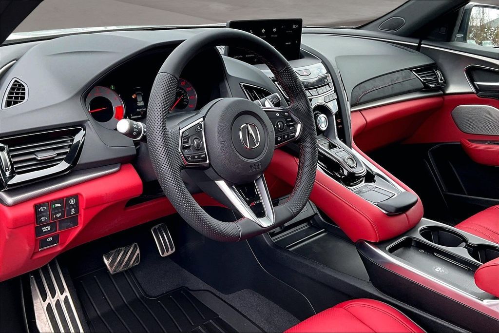 16 Speakers, 4-Wheel Disc Brakes, ABS brakes, Adaptive suspension, Air Conditioning, Alloy wheels, AM/FM radio: SiriusXM, Apple CarPlay/Android Auto, Auto High-beam Headlights, Auto-dimming Rear-View mirror, Automatic temperature control, Brake assist, Bumpers: body-color, Compass, Delay-off headlights, Driver door bin, Driver vanity mirror, Dual front impact airbags, Dual front side impact airbags, Electronic Stability Control, Emergency communication system: AcuraLink, Exterior Parking Camera Rear, Four wheel independent suspension, Front anti-roll bar, Front Bucket Seats, Front Center Armrest, Front dual zone A/C, Front fog lights, Front reading lights, Fully automatic headlights, Garage door transmitter: HomeLink, Heads-Up Display, Heated and Ventilated Front Sport Seats, Heated door mirrors, Heated front seats, Heated rear seats, Heated steering wheel, Illuminated entry, Knee airbag, Lane departure: Lane Keeping Assist System (LKAS) active, Leather steering wheel, Low tire pressure warning, Memory seat, Navigation system: Acura Navigation System with 3D View, Occupant sensing airbag, Outside temperature display, Overhead airbag, Overhead console, Panic alarm, Passenger door bin, Passenger vanity mirror, Perforated Milano Premium Leather-Trimmed Interior, Power door mirrors, Power driver seat, Power Liftgate, Power moonroof, Power passenger seat, Power steering, Power windows, Radio data system, Radio: ELS Studio 3D Premium Audio System, Rain sensing wipers, Rear anti-roll bar, Rear reading lights, Rear seat center armrest, Rear window defroster, Rear window wiper, Remote keyless entry, Security system, Speed control, Speed-sensing steering, Split folding rear seat, Spoiler, Sport steering wheel, Steering wheel mounted audio controls, Tachometer, Telescoping steering wheel, Tilt steering wheel, Traction control, Trip computer, Turn signal indicator mirrors, Variably intermittent wipers, Ventilated front seats, and Wheels: 20" x 8.0J Berlina Black Machine-Finished.