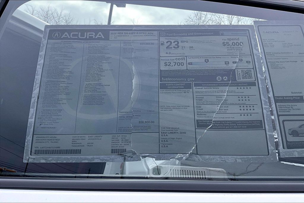 2026 Acura RDX A-Spec Advance Package SH-AWD Platinum White Pearl 21/26 City/Highway MPG 4D Sport Utility AWD 2.0L 16V DOHC 10-Speed Automatic