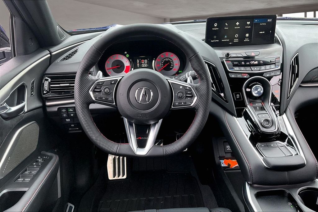 16 Speakers, 4-Wheel Disc Brakes, ABS brakes, Adaptive suspension, Air Conditioning, Alloy wheels, AM/FM radio: SiriusXM, Apple CarPlay/Android Auto, Auto High-beam Headlights, Auto-dimming Rear-View mirror, Automatic temperature control, Brake assist, Bumpers: body-color, Compass, Delay-off headlights, Driver door bin, Driver vanity mirror, Dual front impact airbags, Dual front side impact airbags, Electronic Stability Control, Emergency communication system: AcuraLink, Exterior Parking Camera Rear, Four wheel independent suspension, Front anti-roll bar, Front Bucket Seats, Front Center Armrest, Front dual zone A/C, Front fog lights, Front reading lights, Fully automatic headlights, Garage door transmitter: HomeLink, Heads-Up Display, Heated and Ventilated Front Sport Seats, Heated door mirrors, Heated front seats, Heated rear seats, Heated steering wheel, Illuminated entry, Knee airbag, Lane departure: Lane Keeping Assist System (LKAS) active, Leather steering wheel, Low tire pressure warning, Memory seat, Navigation system: Acura Navigation System with 3D View, Occupant sensing airbag, Outside temperature display, Overhead airbag, Overhead console, Panic alarm, Passenger door bin, Passenger vanity mirror, Perforated Milano Premium Leather-Trimmed Interior, Power door mirrors, Power driver seat, Power Liftgate, Power moonroof, Power passenger seat, Power steering, Power windows, Radio data system, Radio: ELS Studio 3D Premium Audio System, Rain sensing wipers, Rear anti-roll bar, Rear reading lights, Rear seat center armrest, Rear window defroster, Rear window wiper, Remote keyless entry, Security system, Speed control, Speed-sensing steering, Split folding rear seat, Spoiler, Sport steering wheel, Steering wheel mounted audio controls, Tachometer, Telescoping steering wheel, Tilt steering wheel, Traction control, Trip computer, Turn signal indicator mirrors, Variably intermittent wipers, Ventilated front seats, and Wheels: 20" x 8.0J Berlina Black Machine-Finished.
