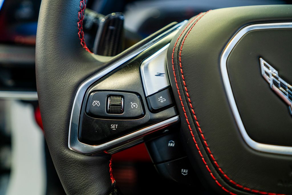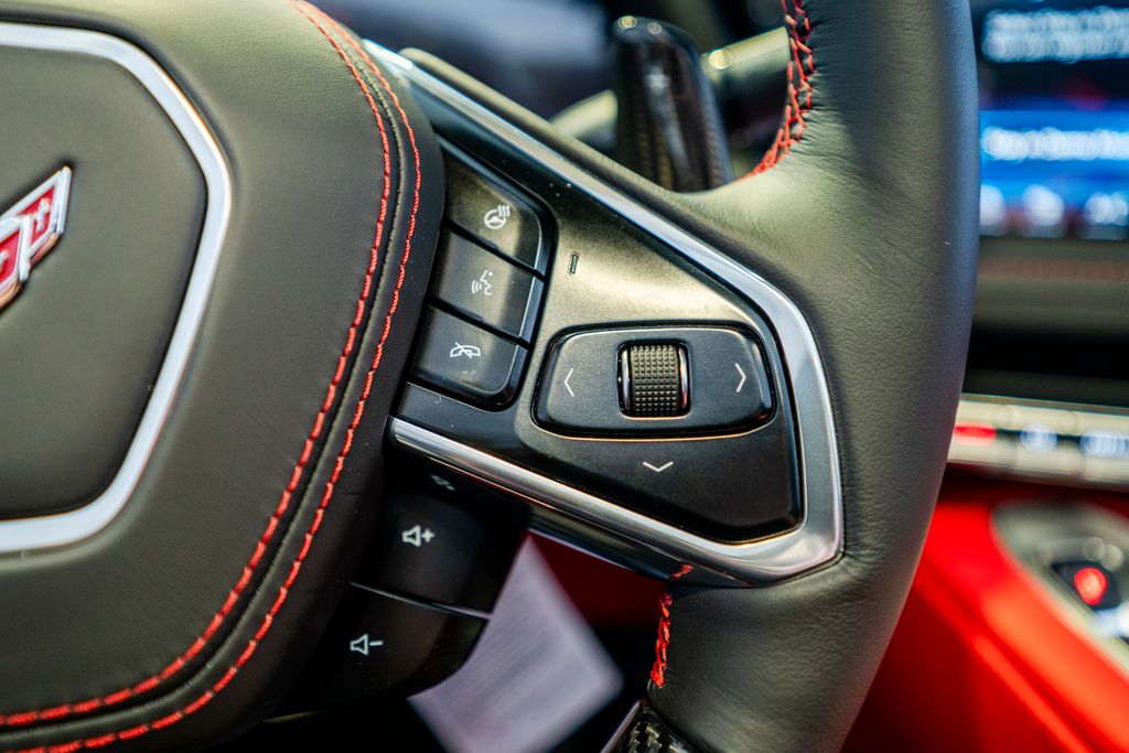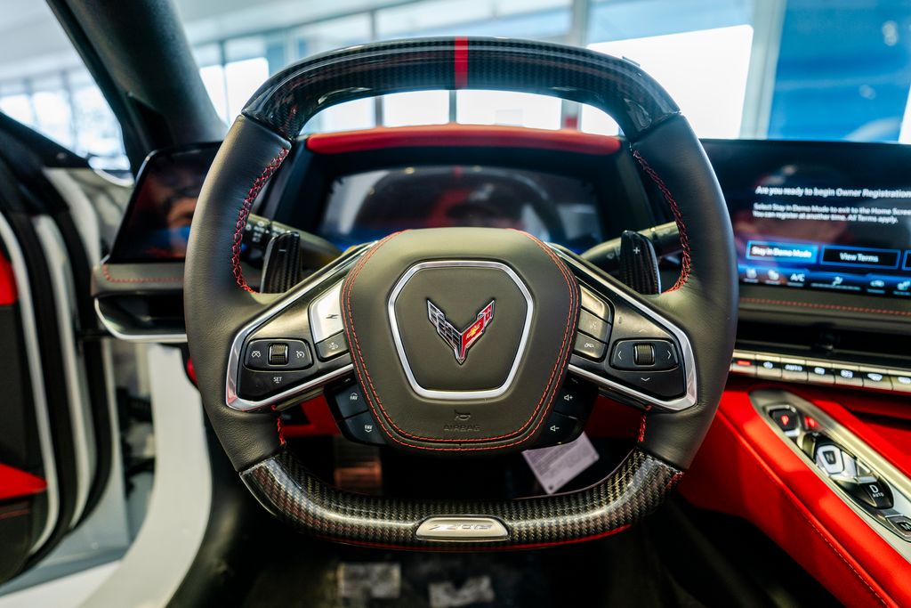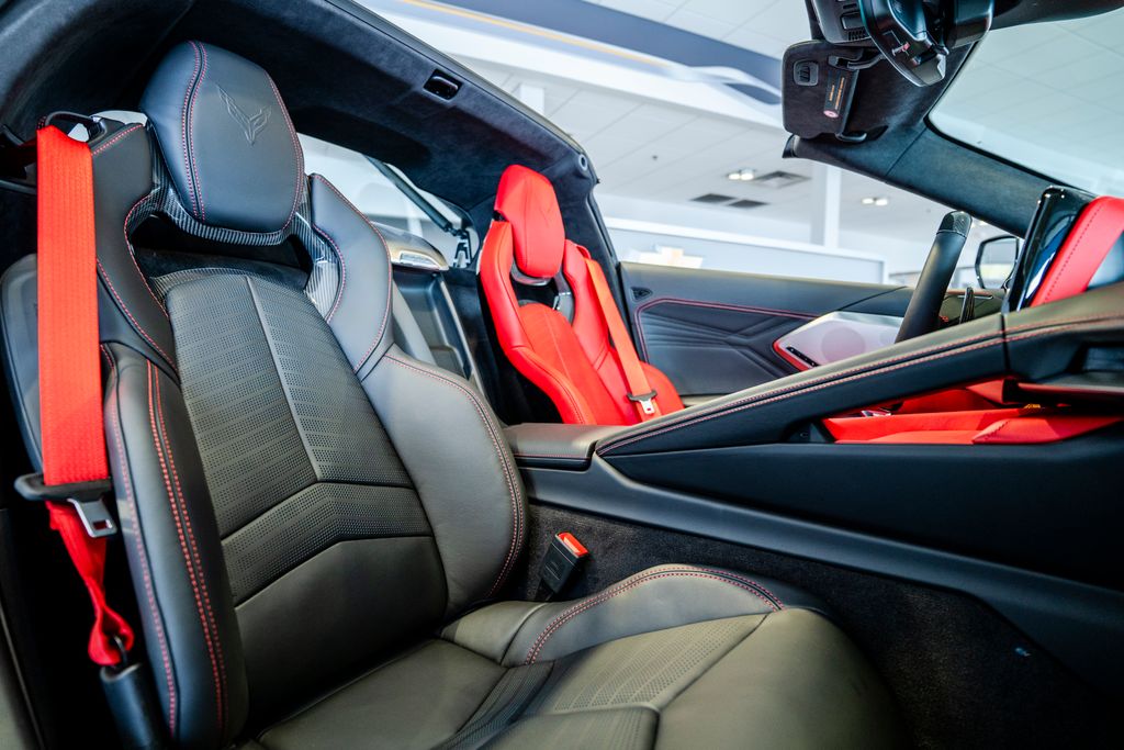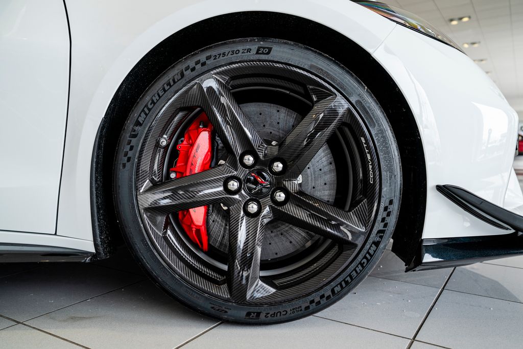 Carbon Flash-Painted Carbon Fiber Aero Package (Carbon-Flash Painted Carbon Fiber Ground Effects), Custom Leather Wrapped Interior Package, Memory Driver and Passenger Convenience Package, Preferred Equipment Group 3LZ (2 Cargo Nets, 8-Way Power Driver Seat Adjuster, 8-Way Power Passenger Seat Adjuster, Bose Performance Series Sound System with 14 Speakers, Driver Power Bolster Seat Adjuster, Electrical Theft Deterrent System, GT2 Bucket Seats, HD Front and Rear Vision Cameras, Heated and Vented Driver and Passenger Seats, Heated Steering Wheel, Passenger Power Bolster Seat Adjuster, Performance Data and Video Recorder, Power Driver Lumbar Control Seat Adjuster, Power Passenger Lumbar Control Seat Adjuster, Power-Adjustable Outside Heated Mirrors, Rear Cross Traffic Alert, Side Blind Zone Alert, Universal Home Remote, Vehicle Inclination Theft Deterrent Sensor, Vehicle Interior Movement Theft Deterrent Sensor, and Wireless Phone Charging), Sueded Microfiber-Wrapped Upper Interior Trim Package, Z07 Carbon Flash Aero and Wheel Package, Z07 Performance Package (4-Wheel Antilock 4-Wheel Disc Carbon Ceramic Brakes, Dark Gray Metallic-Painted Calipers, and Z07 Suspension with Magnetic Selective Ride Control), 14 Speakers, 4-Wheel Disc Brakes, ABS brakes, Adaptive suspension, Air Conditioning, Alloy wheels, AM/FM radio: SiriusXM, Auto High-beam Headlights, Auto-dimming door mirrors, Auto-dimming Rear-View mirror, Automatic Leveling System Headlamp Control, Automatic temperature control, Black Exhaust Tips, Brake assist, Bright Red-Painted Calipers, Bumpers: body-color, Compass, Dark Stealth Front and Rear Crossed Flags Emblem, Delay-off headlights, Driver door bin, Driver vanity mirror, Dual front impact airbags, Dual front side impact airbags, Electronic Stability Control, Emergency communication system: OnStar and Chevrolet connected services capable, Exterior Parking Camera Rear, Four wheel independent suspension, Front anti-roll bar, Front Bucket Seats, Front Center Armrest, Front dual zone A/C, Front License Plate Bracket, Front Lift Adjustable Height with Memory, Front reading lights, Fully automatic headlights, Garage door transmitter, Heads-Up Display, Heated door mirrors, Heated front seats, Heated steering wheel, Illuminated entry, Leather Shift Knob, Leather steering wheel, Low tire pressure warning, Memory seat, Napa Leather Seating Surfaces with Perforated Inserts, Navigation System, Occupant sensing airbag, Outside temperature display, Overhead console, Panic alarm, Passenger door bin, Passenger vanity mirror, Power door mirrors, Power driver seat, Power passenger seat, Power steering, Power windows, Premium audio system: Chevrolet Infotainment 3 Premium, Radio data system, Radio: Infotainment System with Google Built-in, Rear anti-roll bar, Rear window defroster, Remote keyless entry, Security system, Speed control, Speed-sensing steering, Spoiler, Sport steering wheel, Steering wheel memory, Steering wheel mounted audio controls, Tachometer, Telescoping steering wheel, Tilt steering wheel, Torch Red Seat Belt Color, Traction control, Trip computer, Turn signal indicator mirrors, Variably intermittent wipers, Ventilated front seats, Voltmeter, Wheels: 20" x 10" Front and 21" x 13" Rear Titanium Satin, and Wheels: 20" x 10" Front and 21" x 13" Rear Visible Carbon Fiber.