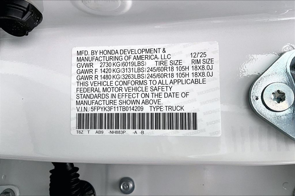Price does not include dealer processing fee of $799. Dealer added accessories not included. Black Cloth, 4-Wheel Disc Brakes, 4.33 Axle Ratio, 7 Speakers, ABS brakes, Air Conditioning, Alloy wheels, AM/FM radio, Automatic temperature control, Blind Spot Information (BSI) System warning, Bluetooth® Hands-Free Link, Brake assist, Bumpers: body-color, Cloth Seat Trim, Delay-off headlights, Driver door bin, Driver vanity mirror, Driver's Seat Mounted Armrest, Dual front impact airbags, Dual front side impact airbags, Electronic Stability Control, Emergency communication system: HondaLink Assist, Exterior Parking Camera Rear, Four wheel independent suspension, Front anti-roll bar, Front Bucket Seats, Front dual zone A/C, Front fog lights, Fully automatic headlights, Illuminated entry, Low tire pressure warning, Occupant sensing airbag, Outside temperature display, Overhead airbag, Overhead console, Panic alarm, Passenger door bin, Passenger seat mounted armrest, Passenger vanity mirror, Power door mirrors, Power steering, Power windows, Radio data system, Radio: 215-Watt Audio System with 7 Speakers, Rear air conditioning, Rear anti-roll bar, Rear reading lights, Rear seat center armrest, Rear step bumper, Rear window defroster, Remote keyless entry, Security system, Speed control, Speed-sensing steering, Split folding rear seat, Steering wheel mounted audio controls, Tachometer, Telescoping steering wheel, Tilt steering wheel, Traction control, Trip computer, Variably intermittent wipers, and Wheels: 18" Shark Grey Alloy.