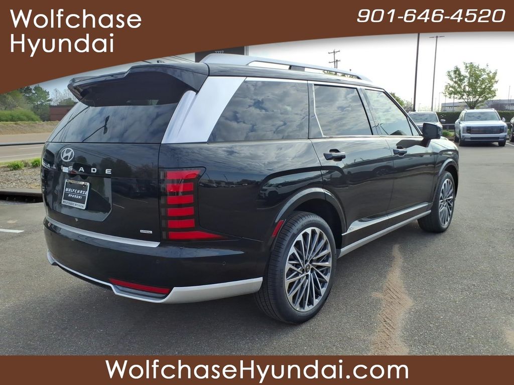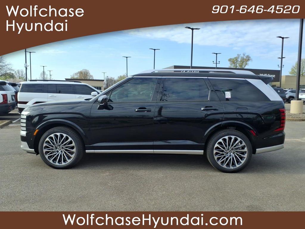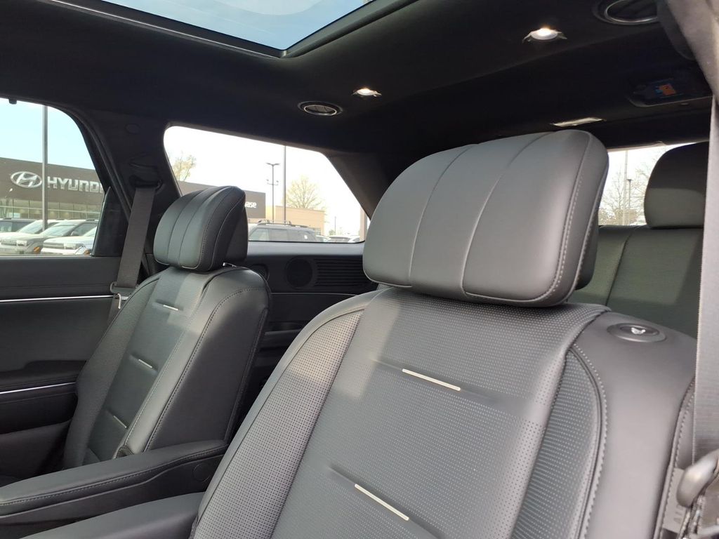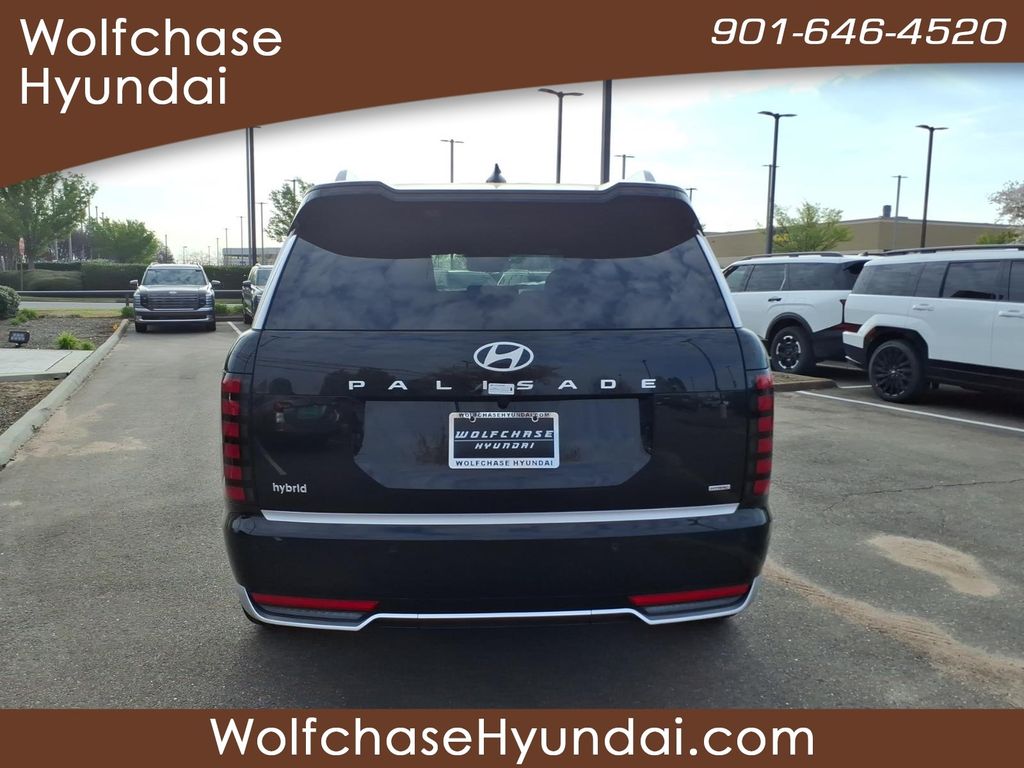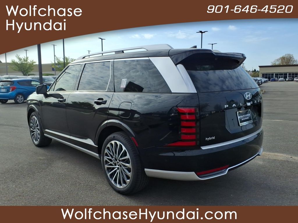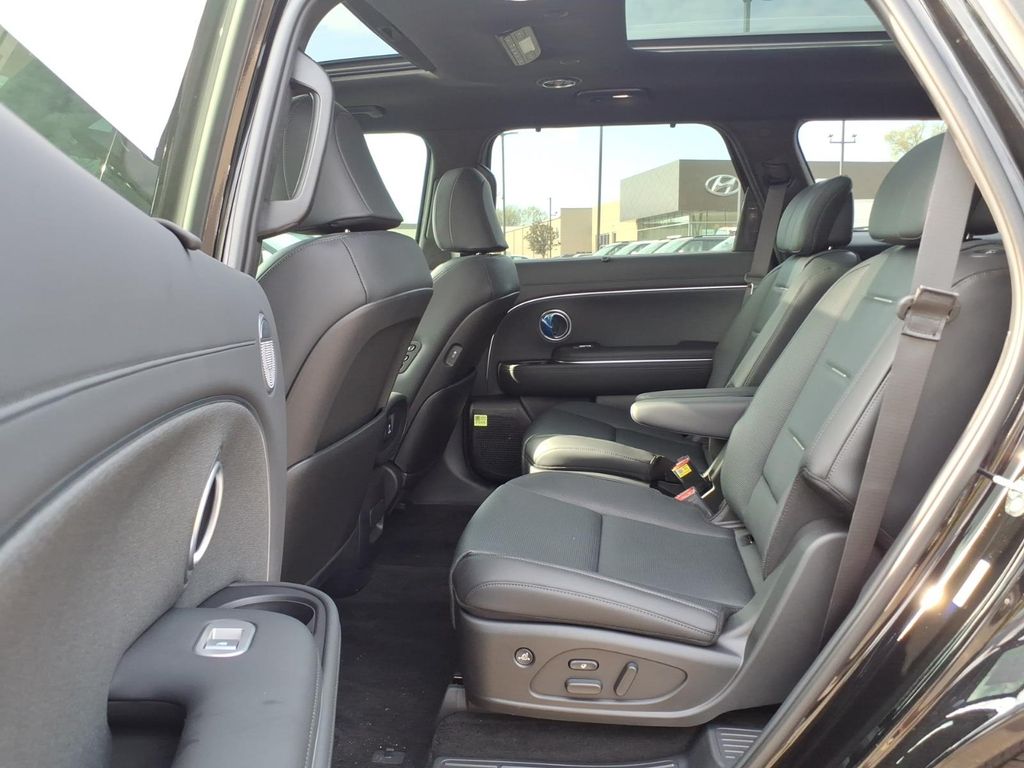 Option Group 01, Palisade Hybrid Calligraphy, 4D Sport Utility, 2.5L Turbocharged GDI 4-Cylinder Hybrid, 6-Speed Automatic, AWD, Abyss Black Pearl, Black Leather, 3rd row seats: split-bench, AM/FM radio: SiriusXM, Auto-leveling suspension, Emergency communication system: None, Exterior Parking Camera Rear, Fully automatic headlights, Garage door transmitter: HomeLink, Genuine wood console insert, Genuine wood dashboard insert, Heads-Up Display, Heated and Ventilated Front Bucket Seats, Navigation System, Power Liftgate, Power moonroof, Premium Nappa Leather Seat Trim, Radio: Infotainment Navigation System, Security system, Steering wheel mounted audio controls, Turn signal indicator mirrors, Ventilated front seats, Ventilated rear seats, Wheels: 21" x 8.5J Alloy, 14 Speakers, 4-Wheel Disc Brakes, ABS brakes, Air Conditioning, All-Season Fitted Liners, Alloy wheels, Apple CarPlay & Android Auto, Audio memory, Auto High-beam Headlights, Auto-dimming door mirrors, Auto-dimming Rear-View mirror, Automatic temperature control, Brake assist, Bumpers: body-color, Cargo Blocks, Cargo Net, Carpeted Floor Mats, Compass, Delay-off headlights, Driver door bin, Driver vanity mirror, Dual front impact airbags, Dual front side impact airbags, Electronic Stability Control, First Aid Kit, Four wheel independent suspension, Front anti-roll bar, Front Bucket Seats, Front Center Armrest, Front dual zone A/C, Front reading lights, Heated door mirrors, Heated front seats, Heated rear seats, Heated steering wheel, HVAC memory, Illuminated entry, Knee airbag, Leather steering wheel, Low tire pressure warning, Memory seat, Occupant sensing airbag, Outside temperature display, Overhead airbag, Overhead console, Panic alarm, Passenger door bin, Passenger vanity mirror, Power door mirrors, Power driver seat, Power passenger seat, Power steering, Power windows, Radio data system, Rain sensing wipers, Rear air conditioning, Rear anti-roll bar, Rear audio controls, Rear reading lights, Rear side impact airbag, Rear window defroster, Rear window wiper, Reclining 3rd row seat, Remote keyless entry, Speed control, Split folding rear seat, Spoiler, Tachometer, Telescoping steering wheel, Tilt steering wheel, Traction control, Trip computer, and Variably intermittent wipers.