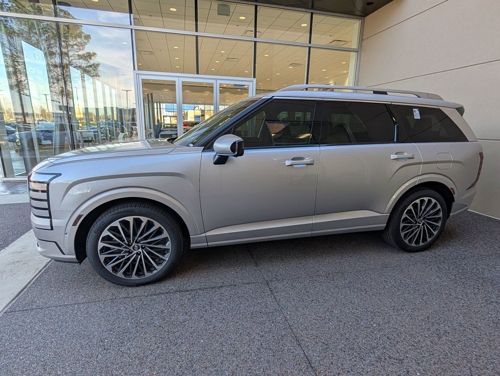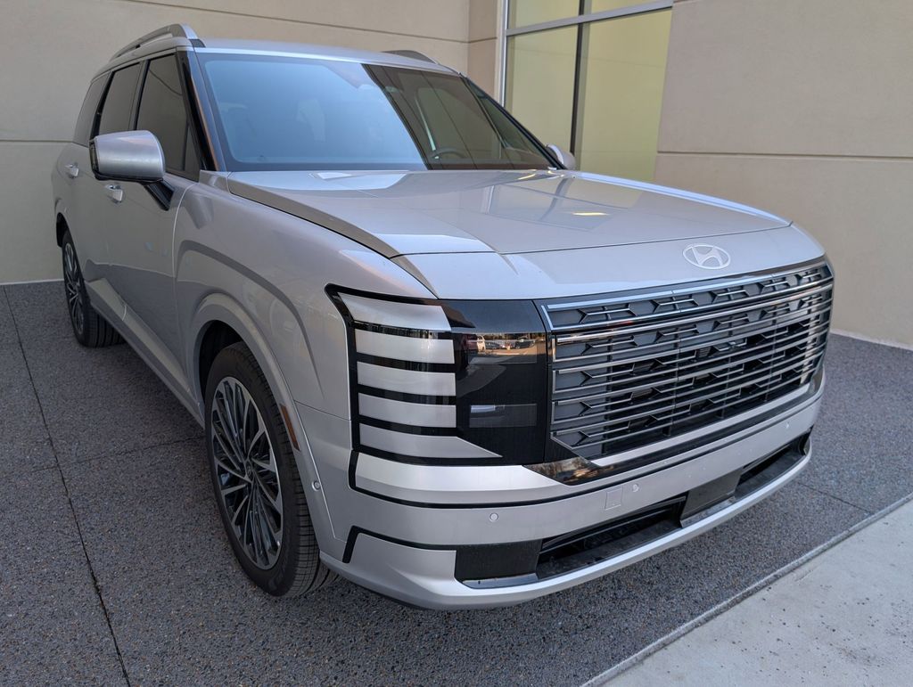 Option Group 01, Palisade Calligraphy, 4D Sport Utility, V6, 8-Speed Automatic, FWD, Typhoon Silver Metallic, Black Leather, 14 Speakers, 3rd row seats: split-bench, 4-Wheel Disc Brakes, ABS brakes, Air Conditioning, Alloy wheels, AM/FM radio: SiriusXM, Apple CarPlay & Android Auto, Audio memory, Auto High-beam Headlights, Auto-dimming door mirrors, Auto-dimming Rear-View mirror, Auto-leveling suspension, Automatic temperature control, Brake assist, Bumpers: body-color, Cargo Cover, Cargo Tray, Carpeted Floor Mats, Compass, Delay-off headlights, Driver door bin, Driver vanity mirror, Dual front impact airbags, Dual front side impact airbags, Electronic Stability Control, Exterior Parking Camera Rear, First Aid Kit, Four wheel independent suspension, Front anti-roll bar, Front Bucket Seats, Front Center Armrest, Front dual zone A/C, Front reading lights, Fully automatic headlights, Garage door transmitter: HomeLink, Genuine wood console insert, Genuine wood dashboard insert, Heads-Up Display, Heated door mirrors, Heated front seats, Heated rear seats, Heated steering wheel, HVAC memory, Illuminated entry, Knee airbag, Leather steering wheel, Low tire pressure warning, Memory seat, Navigation System, Occupant sensing airbag, Outside temperature display, Overhead airbag, Overhead console, Panic alarm, Passenger door bin, Passenger vanity mirror, Power door mirrors, Power driver seat, Power Liftgate, Power moonroof, Power passenger seat, Power steering, Power windows, Premium Nappa Leather Seat Trim, Radio data system, Radio: Infotainment Navigation System, Rain sensing wipers, Rear air conditioning, Rear anti-roll bar, Rear audio controls, Rear reading lights, Rear side impact airbag, Rear window defroster, Rear window wiper, Reclining 3rd row seat, Remote keyless entry, Roadside Assistance Kit, Security system, Speed control, Split folding rear seat, Spoiler, Steering wheel mounted audio controls, Tachometer, Telescoping steering wheel, Tilt steering wheel, Traction control, Trip computer, Turn signal indicator mirrors, Variably intermittent wipers, Ventilated front seats, Ventilated rear seats, and Wheels: 21" x 8.5J Alloy. Price includes: $1000 - Hyundai HMF Dealer Choice : $1000 discount and 5.39% APR for 24 months. $44.05 per $1000 financed. Available to well qualified buyers who finance through Hyundai Motor Finance. H704. Exp. 03/31/2026 $2000 - Sales Event Cash. Exp. 03/31/2026