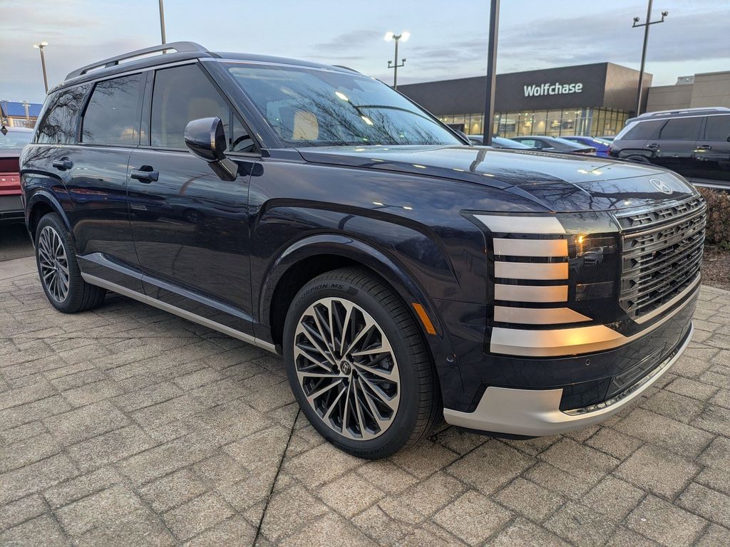 Option Group 01, 14 Speakers, 3rd row seats: split-bench, 4-Wheel Disc Brakes, ABS brakes, Air Conditioning, All-Season Fitted Liners, Alloy wheels, AM/FM radio: SiriusXM, Apple CarPlay & Android Auto, Audio memory, Auto High-beam Headlights, Auto-dimming door mirrors, Auto-dimming Rear-View mirror, Auto-leveling suspension, Automatic temperature control, Brake assist, Bumpers: body-color, Cargo Cover, Cargo Tray, Carpeted Floor Mats, Compass, Delay-off headlights, Driver door bin, Driver vanity mirror, Dual front impact airbags, Dual front side impact airbags, Electronic Stability Control, Emergency communication system: None, Exterior Parking Camera Rear, Four wheel independent suspension, Front anti-roll bar, Front Bucket Seats, Front Center Armrest, Front dual zone A/C, Front reading lights, Fully automatic headlights, Garage door transmitter: HomeLink, Genuine wood console insert, Genuine wood dashboard insert, Heads-Up Display, Heated and Ventilated Front Bucket Seats, Heated door mirrors, Heated front seats, Heated rear seats, Heated steering wheel, HVAC memory, Illuminated entry, Knee airbag, Leather steering wheel, Low tire pressure warning, Memory seat, Navigation System, Occupant sensing airbag, Outside temperature display, Overhead airbag, Overhead console, Panic alarm, Passenger door bin, Passenger vanity mirror, Power door mirrors, Power driver seat, Power Liftgate, Power moonroof, Power passenger seat, Power steering, Power windows, Premium Nappa Leather Seat Trim, Radio data system, Radio: Infotainment Navigation System, Rain sensing wipers, Rear air conditioning, Rear anti-roll bar, Rear audio controls, Rear reading lights, Rear side impact airbag, Rear window defroster, Rear window wiper, Reclining 3rd row seat, Remote keyless entry, Security system, Speed control, Split folding rear seat, Spoiler, Steering wheel mounted audio controls, Tachometer, Telescoping steering wheel, Tilt steering wheel, Traction control, Trip computer, Turn signal indicator mirrors, Variably intermittent wipers, Ventilated front seats, Ventilated rear seats, and Wheels: 21" x 8.5J Alloy. Price includes: $1000 - Hyundai HMF Dealer Choice : $1000 discount and 5.39% APR for 24 months. $44.05 per $1000 financed. Available to well qualified buyers who finance through Hyundai Motor Finance. H704. Exp. 03/31/2026 $2000 - Sales Event Cash. Exp. 03/31/2026