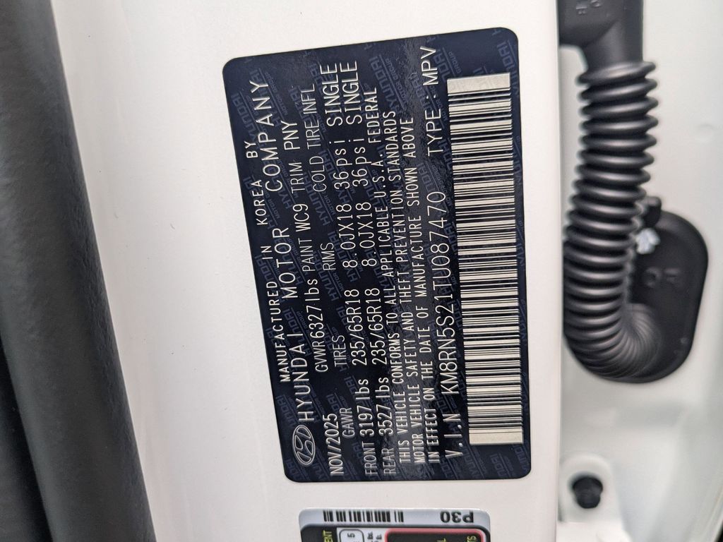 Option Group 01, 100W Charging Cable, 3rd row seats: split-bench, 4-Wheel Disc Brakes, 8 Speakers, ABS brakes, Air Conditioning, All-Season Fitted Liners, Alloy wheels, AM/FM radio: SiriusXM, Apple CarPlay & Android Auto, Audio memory, Auto High-beam Headlights, Auto-dimming door mirrors, Auto-dimming Rear-View mirror, Auto-leveling suspension, Automatic temperature control, Brake assist, Bumpers: body-color, Cargo Cover, Cargo Mat, Up Seatback, Cargo Net, Carpeted Floor Mats, Compass, Delay-off headlights, Driver door bin, Driver vanity mirror, Dual front impact airbags, Dual front side impact airbags, Electronic Stability Control, Emergency communication system: None, Exterior Parking Camera Rear, First Aid Kit, Four wheel independent suspension, Front anti-roll bar, Front Bucket Seats, Front Center Armrest, Front dual zone A/C, Front reading lights, Fully automatic headlights, Garage door transmitter: HomeLink, H-Tex Leatherette Seat Trim, Heated and Ventilated Front Bucket Seats, Heated door mirrors, Heated front seats, Heated rear seats, Heated steering wheel, HVAC memory, Illuminated entry, Knee airbag, Leather steering wheel, Low tire pressure warning, Memory seat, Navigation System, Occupant sensing airbag, Outside temperature display, Overhead airbag, Overhead console, Panic alarm, Passenger door bin, Passenger vanity mirror, Power door mirrors, Power driver seat, Power Liftgate, Power moonroof, Power passenger seat, Power steering, Power windows, Radio data system, Radio: Infotainment Navigation System, Rear air conditioning, Rear anti-roll bar, Rear audio controls, Rear reading lights, Rear side impact airbag, Rear window defroster, Rear window wiper, Reclining 3rd row seat, Remote keyless entry, Security system, Speed control, Split folding rear seat, Spoiler, Steering wheel mounted audio controls, Tachometer, Telescoping steering wheel, Tilt steering wheel, Traction control, Trip computer, Turn signal indicator mirrors, Variably intermittent wipers, Ventilated front seats, Ventilated rear seats, and Wheels: 18" x 8.0J Alloy. Price includes: $1000 - Hyundai HMF Dealer Choice : $1000 discount and 5.39% APR for 24 months. $44.05 per $1000 financed. Available to well qualified buyers who finance through Hyundai Motor Finance. H704. Exp. 03/31/2026