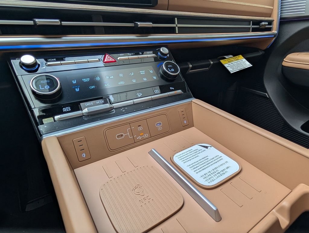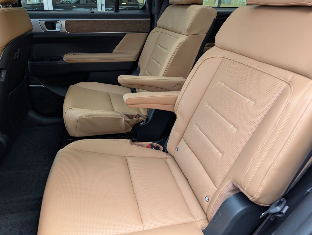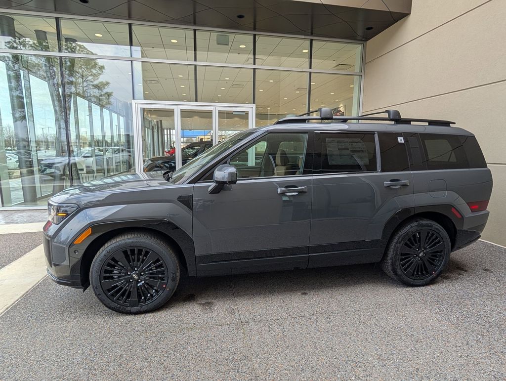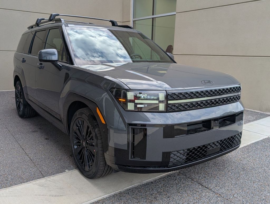 Option Group 01, Santa Fe Hybrid Calligraphy, 4D Sport Utility, I4, 6-Speed Automatic with Shiftronic, FWD, Ecotronic Gray, Pecan Brown Leather, 12 Speakers, 3rd row seats: bench, 4-Wheel Disc Brakes, ABS brakes, Air Conditioning, Alloy wheels, AM/FM radio: SiriusXM, Apple CarPlay & Android Auto, Auto High-beam Headlights, Auto-dimming Rear-View mirror, Automatic temperature control, Brake assist, Bumpers: body-color, Cargo Net, Carpeted Floor Mats, Delay-off headlights, Driver door bin, Driver vanity mirror, Dual front impact airbags, Dual front side impact airbags, Electronic Stability Control, Emergency communication system, Exterior Parking Camera Rear, First Aid Kit, Four wheel independent suspension, Front anti-roll bar, Front Bucket Seats, Front Center Armrest, Front dual zone A/C, Front reading lights, Fully automatic headlights, Garage door transmitter: HomeLink, Heads-Up Display, Heated door mirrors, Heated front seats, Heated rear seats, Heated steering wheel, Illuminated entry, Knee airbag, Leather steering wheel, Low tire pressure warning, Memory seat, Navigation System, Occupant sensing airbag, Outside temperature display, Overhead airbag, Overhead console, Panic alarm, Passenger door bin, Passenger vanity mirror, Power door mirrors, Power driver seat, Power Liftgate, Power moonroof, Power passenger seat, Power steering, Power windows, Quilted Premium Nappa Leather Seat Trim, Radio: AM/FM/HD Bose Premium Audio System, Rain sensing wipers, Rear anti-roll bar, Rear side impact airbag, Rear window defroster, Rear window wiper, Remote keyless entry, Roadside Assistance Kit, Roof Rack Crossbars, Security system, Speed control, Speed-sensing steering, Split folding rear seat, Spoiler, Steering wheel mounted audio controls, Tachometer, Telescoping steering wheel, Tilt steering wheel, Traction control, Trip computer, Turn signal indicator mirrors, Variably intermittent wipers, Ventilated front seats, and Wheels: 20" x 8.5J Unique Dark Finish Alloy. Price includes: $4000 - Hyundai HMF Dealer Choice : $4000 discount and 5.39% APR for 24 months. $44.05 per $1000 financed. Available to well qualified buyers who finance through Hyundai Motor Finance. H704. Exp. 03/31/2026