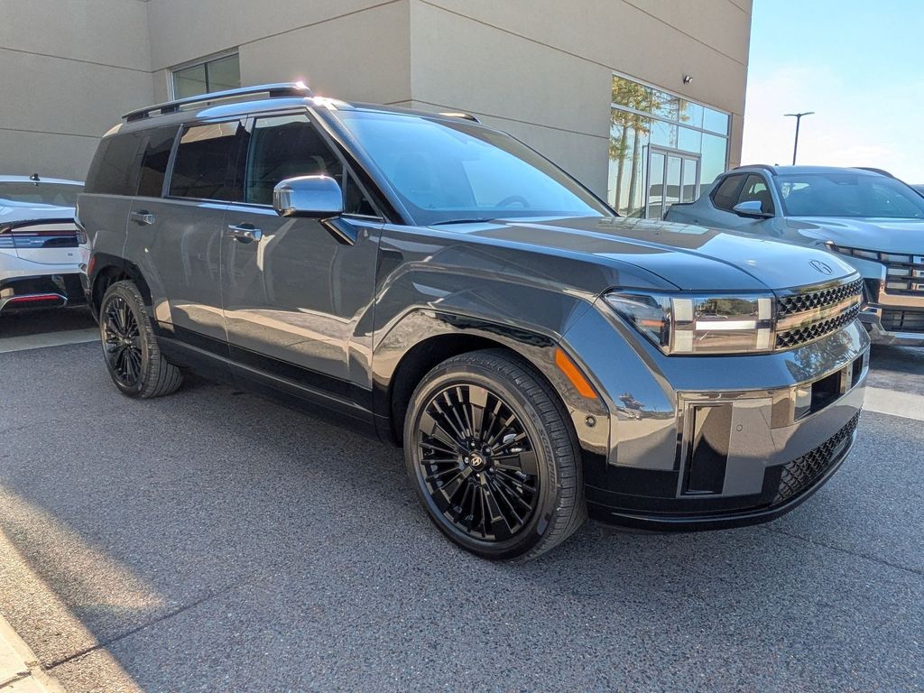 Option Group 01, I4, 12 Speakers, 3rd row seats: bench, 4-Wheel Disc Brakes, ABS brakes, Air Conditioning, All Season Fitted Liners, Alloy wheels, AM/FM radio: SiriusXM, Apple CarPlay & Android Auto, Auto High-beam Headlights, Auto-dimming Rear-View mirror, Automatic temperature control, Brake assist, Bumpers: body-color, Cargo Cover/Screen, Cargo Net, Cargo Tray, Carpeted Floor Mats, Delay-off headlights, Driver door bin, Driver vanity mirror, Dual front impact airbags, Dual front side impact airbags, Electronic Stability Control, Emergency communication system, Exterior Parking Camera Rear, First Aid Kit, Four wheel independent suspension, Front anti-roll bar, Front Bucket Seats, Front Center Armrest, Front dual zone A/C, Front reading lights, Fully automatic headlights, Garage door transmitter: HomeLink, Heads-Up Display, Heated and Ventilated Front Bucket Seats, Heated door mirrors, Heated front seats, Heated rear seats, Heated steering wheel, Illuminated entry, Knee airbag, Leather steering wheel, Low tire pressure warning, Memory seat, Navigation System, Occupant sensing airbag, Outside temperature display, Overhead airbag, Overhead console, Panic alarm, Passenger door bin, Passenger vanity mirror, Power door mirrors, Power driver seat, Power Liftgate, Power moonroof, Power passenger seat, Power steering, Power windows, Quilted Premium Nappa Leather Seat Trim, Radio: AM/FM/HD Bose Premium Audio System, Rain sensing wipers, Rear anti-roll bar, Rear side impact airbag, Rear window defroster, Rear window wiper, Remote keyless entry, Security system, Speed control, Speed-sensing steering, Split folding rear seat, Spoiler, Steering wheel mounted audio controls, Tachometer, Telescoping steering wheel, Tilt steering wheel, Traction control, Trip computer, Turn signal indicator mirrors, Variably intermittent wipers, Ventilated front seats, and Wheels: 20" x 8.5J Unique Dark Finish Alloy. Price includes: $4000 - Hyundai HMF Dealer Choice : $4000 discount and 5.39% APR for 24 months. $44.05 per $1000 financed. Available to well qualified buyers who finance through Hyundai Motor Finance. H704. Exp. 03/31/2026