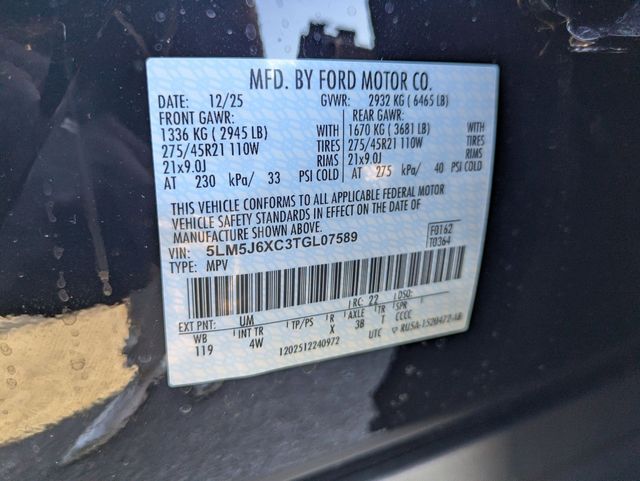 VIN 5LM5J6XC3TGL07589