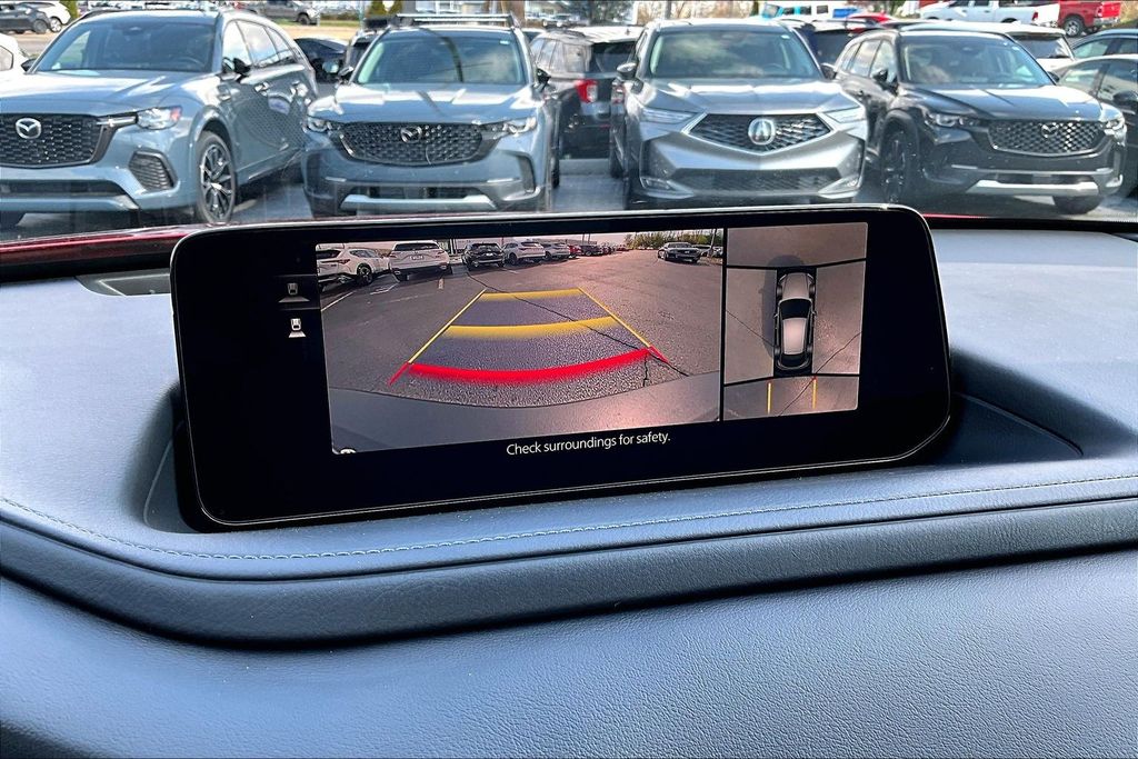 12 Speakers, 4-Wheel Disc Brakes, ABS brakes, Air Conditioning, Alloy wheels, AM/FM radio: SiriusXM, AppLink/Apple CarPlay and Android Auto, Auto High-beam Headlights, Auto-dimming door mirrors, Auto-dimming Rear-View mirror, Automatic temperature control, Black Lug Nuts & Black Wheel Locks, Brake assist, Bumpers: body-color, Cargo Cover, Cargo Tray, Compass, Delay-off headlights, Driver door bin, Driver vanity mirror, Dual front impact airbags, Dual front side impact airbags, Electronic Stability Control, Emergency communication system: MAZDA CONNECT, Exterior Parking Camera Rear, Front & Rear Splash Guards, Front anti-roll bar, Front Bucket Seats, Front Center Armrest, Front dual zone A/C, Front reading lights, Front wheel independent suspension, Fully automatic headlights, Garage door transmitter: HomeLink, Heads-Up Display, Heated door mirrors, Heated Front Bucket Seats, Heated front seats, Heated steering wheel, High Wall All-Weather Floor Mats, Illuminated entry, Knee airbag, Leather Seat Trim, Leather Shift Knob, Leather steering wheel, Low tire pressure warning, MAZDA CONNECT Infotainment System, Memory seat, Occupant sensing airbag, Outside temperature display, Overhead airbag, Overhead console, Panic alarm, Passenger door bin, Passenger vanity mirror, Power door mirrors, Power driver seat, Power Liftgate, Power moonroof, Power steering, Power windows, Radio data system, Radio: AM/FM/HD Audio System, Rain sensing wipers, Rear seat center armrest, Rear side impact airbag, Rear window defroster, Rear window wiper, Remote keyless entry, Soul Red Crystal Metallic Paint Charge, Speed control, Speed-sensing steering, Split folding rear seat, Spoiler, Steering wheel mounted audio controls, Tachometer, Telescoping steering wheel, Tilt steering wheel, Traction control, Trip computer, Turn signal indicator mirrors, Variably intermittent wipers, and Wheels: 18" x 7J Aluminum Alloy.