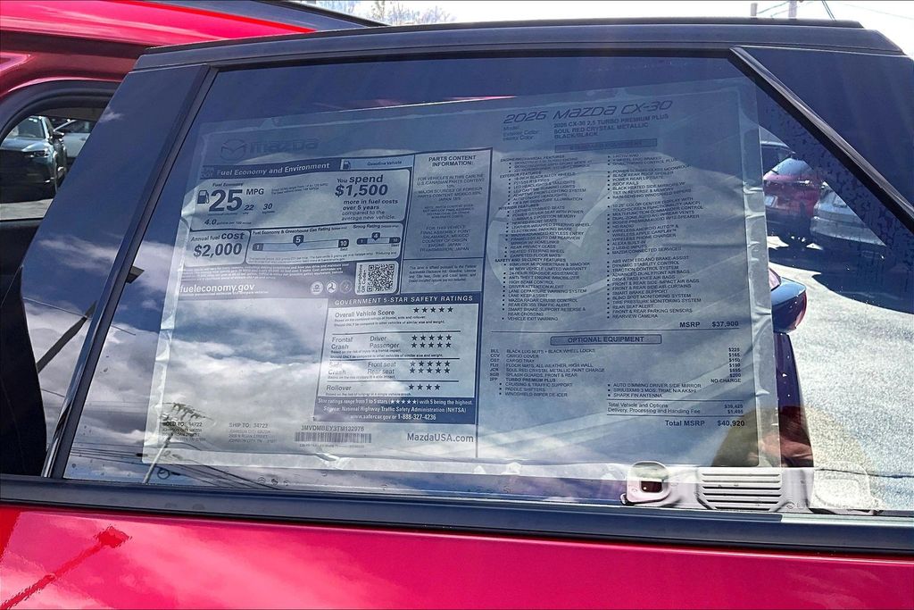 2026 Mazda CX-30 2.5 Turbo Premium Plus Soul Red Crystal Metallic 22/30 City/Highway MPG 4D Sport Utility AWD 2.5L I4 6-Speed Automatic