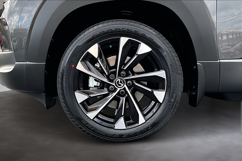 Weather Package, 12 Speakers, 4-Wheel Disc Brakes, ABS brakes, Air Conditioning, Alloy wheels, AM/FM radio: SiriusXM, AppLink/Apple CarPlay and Android Auto, Auto High-beam Headlights, Auto-dimming Rear-View mirror, Automatic temperature control, Black Lug Nuts and Black Wheel Locks, Brake assist, Bumpers: body-color, Delay-off headlights, Driver door bin, Driver vanity mirror, Dual front impact airbags, Dual front side impact airbags, Electronic Stability Control, Emergency communication system: MAZDA CONNECT, Exterior Parking Camera Rear, Front anti-roll bar, Front Bucket Seats, Front Center Armrest, Front dual zone A/C, Front reading lights, Front wheel independent suspension, Fully automatic headlights, Garage door transmitter: HomeLink, Heads-Up Display, Heated and Ventilated Front Seats with 3 Level Adjustment, Heated door mirrors, Heated front seats, Heated rear seats, Heated steering wheel, Illuminated entry, Knee airbag, Leather Seat Trim, Leather Shift Knob, Leather steering wheel, Low tire pressure warning, Machine Gray Metallic Paint Charge, Memory seat, Occupant sensing airbag, Outside temperature display, Overhead airbag, Overhead console, Panic alarm, Passenger door bin, Passenger vanity mirror, Power door mirrors, Power driver seat, Power Liftgate, Power moonroof, Power passenger seat, Power steering, Power windows, Radio data system, Radio: AM/FM/HD Bose 12-Speaker Audio Sound System, Rain sensing wipers, Rear seat center armrest, Rear window defroster, Rear window wiper, Remote keyless entry, Speed control, Speed-sensing steering, Split folding rear seat, Spoiler, Steering wheel mounted audio controls, Tachometer, Telescoping steering wheel, Tilt steering wheel, Traction control, Trip computer, Turn signal indicator mirrors, Variably intermittent wipers, Ventilated front seats, and Wheels: 19" x 7.5J Aluminum Alloy Black Metallic with Machine Cut.