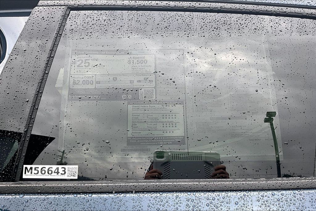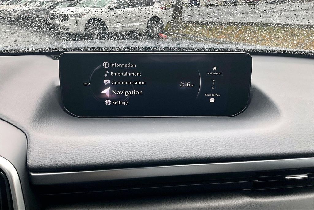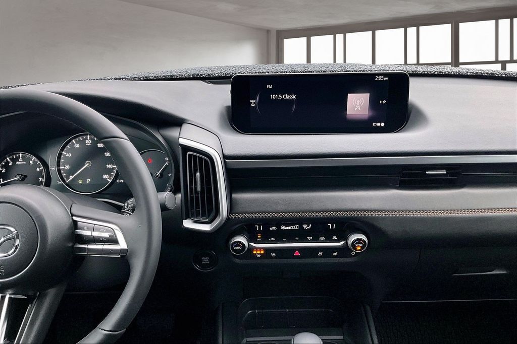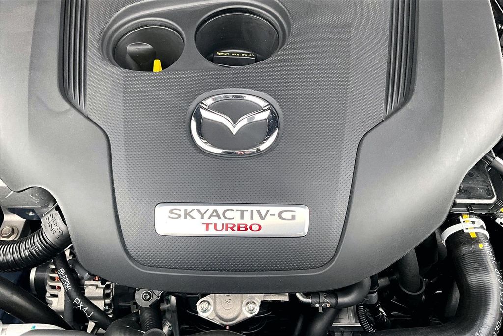 Accent Package, Weather Package, 12 Speakers, 4-Wheel Disc Brakes, ABS brakes, Air Conditioning, Alloy wheels, AM/FM radio: SiriusXM, AppLink/Apple CarPlay and Android Auto, Auto High-beam Headlights, Auto-dimming Rear-View mirror, Automatic temperature control, Black Lug Nuts and Black Wheel Locks, Brake assist, Bumpers: body-color, Delay-off headlights, Driver door bin, Driver vanity mirror, Dual front impact airbags, Dual front side impact airbags, Electronic Stability Control, Emergency communication system: MAZDA CONNECT, Exterior Parking Camera Rear, Front anti-roll bar, Front Bucket Seats, Front Center Armrest, Front dual zone A/C, Front reading lights, Front wheel independent suspension, Fully automatic headlights, Garage door transmitter: HomeLink, Heads-Up Display, Heated and Ventilated Front Seats with 3 Level Adjustment, Heated door mirrors, Heated front seats, Illuminated entry, Knee airbag, Leather Seat Trim, Leather Shift Knob, Leather steering wheel, Low tire pressure warning, Memory seat, Occupant sensing airbag, Outside temperature display, Overhead airbag, Overhead console, Panic alarm, Passenger door bin, Passenger vanity mirror, Power door mirrors, Power driver seat, Power Liftgate, Power moonroof, Power passenger seat, Power steering, Power windows, Radio data system, Radio: AM/FM/HD Bose 12-Speaker Audio Sound System, Rain sensing wipers, Rear seat center armrest, Rear window defroster, Rear window wiper, Remote keyless entry, Speed control, Speed-sensing steering, Split folding rear seat, Spoiler, Steering wheel mounted audio controls, Tachometer, Telescoping steering wheel, Tilt steering wheel, Traction control, Trip computer, Turn signal indicator mirrors, Variably intermittent wipers, Ventilated front seats, and Wheels: 20" x 8J Aluminum Alloy Black Metallic with Machining Cut.