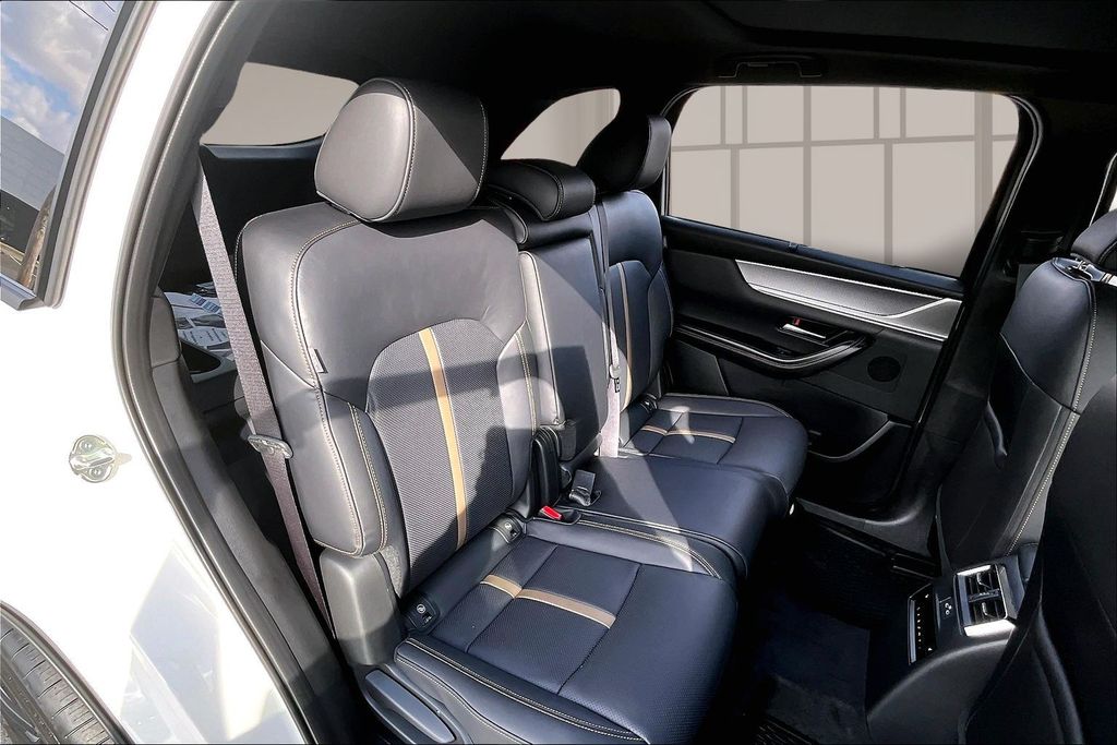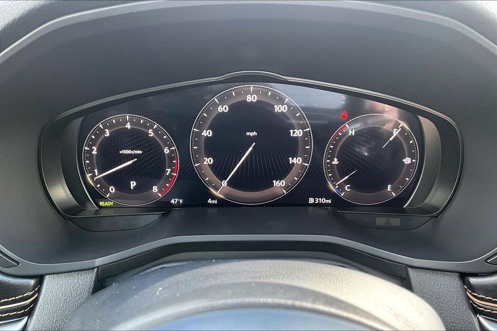 12 Speakers, 4-Wheel Disc Brakes, ABS brakes, Air Conditioning, Alloy wheels, AM/FM radio: SiriusXM, Auto High-beam Headlights, Auto-dimming door mirrors, Auto-dimming Rear-View mirror, Automatic temperature control, Black Cross Bars, Black Lug Nuts and Black Wheel Locks, Brake assist, Bumpers: body-color, Compass, Delay-off headlights, Driver door bin, Driver vanity mirror, Dual front impact airbags, Dual front side impact airbags, E911 Automatic Emergency Notification, Electronic Stability Control, Emergency communication system: MAZDA CONNECT, Four wheel independent suspension, Front anti-roll bar, Front Bucket Seats, Front Center Armrest w/Storage, Front dual zone A/C, Front reading lights, Fully automatic headlights, Garage door transmitter: HomeLink, Heads-Up Display, Heated door mirrors, Heated front seats, Heated rear seats, Heated steering wheel, Heated/Ventilated Front Bucket Seats, Illuminated entry, Infotainment System Voice Command, Knee airbag, Leather Shift Knob, Leather steering wheel, Low tire pressure warning, Mazda Connected Services, Mazda Online Navigation, Memory seat, Nappa Leather Seat Trim, Navigation system: MAZDA CONNECT, Occupant sensing airbag, Outside temperature display, Overhead airbag, Overhead console, Panic alarm, Passenger door bin, Passenger vanity mirror, Power door mirrors, Power driver seat, Power Liftgate, Power moonroof, Power passenger seat, Power steering, Power windows, Radio Broadcast Data System Program Information, Radio data system, Radio: AM/FM with Bose Premium Audio Sound System, Rain sensing wipers, Rear air conditioning, Rear anti-roll bar, Rear reading lights, Rear seat center armrest, Rear window defroster, Rear window wiper, Remote keyless entry, Rhodium White Premium Paint Charge, Security system, SMS Text Message Audio Delivery and Reply, Speed control, Speed-sensing steering, Split folding rear seat, Spoiler, Steering wheel mounted audio controls, Tachometer, Telescoping steering wheel, Tilt steering wheel, Traction control, Trip computer, Variably intermittent wipers, Ventilated front seats, and Wheels: 21" x 9.5J Aluminum Alloy.