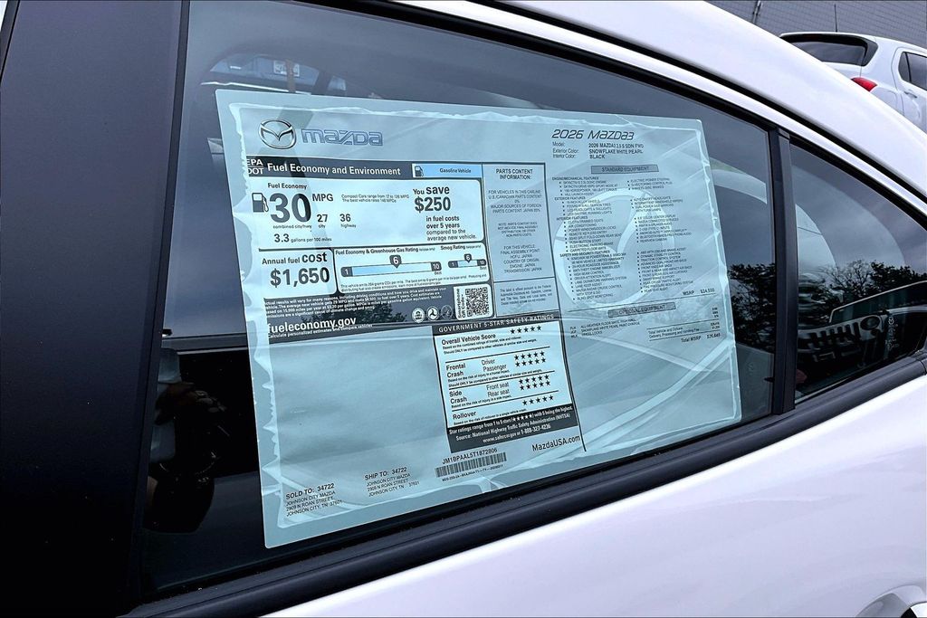 2026 Mazda Mazda3 2.5 S Snowflake White Pearl Mica 27/36 City/Highway MPG 4D Sedan FWD SKYACTIV®-G 2.5L 4-Cylinder DOHC 16V 6-Speed Automatic