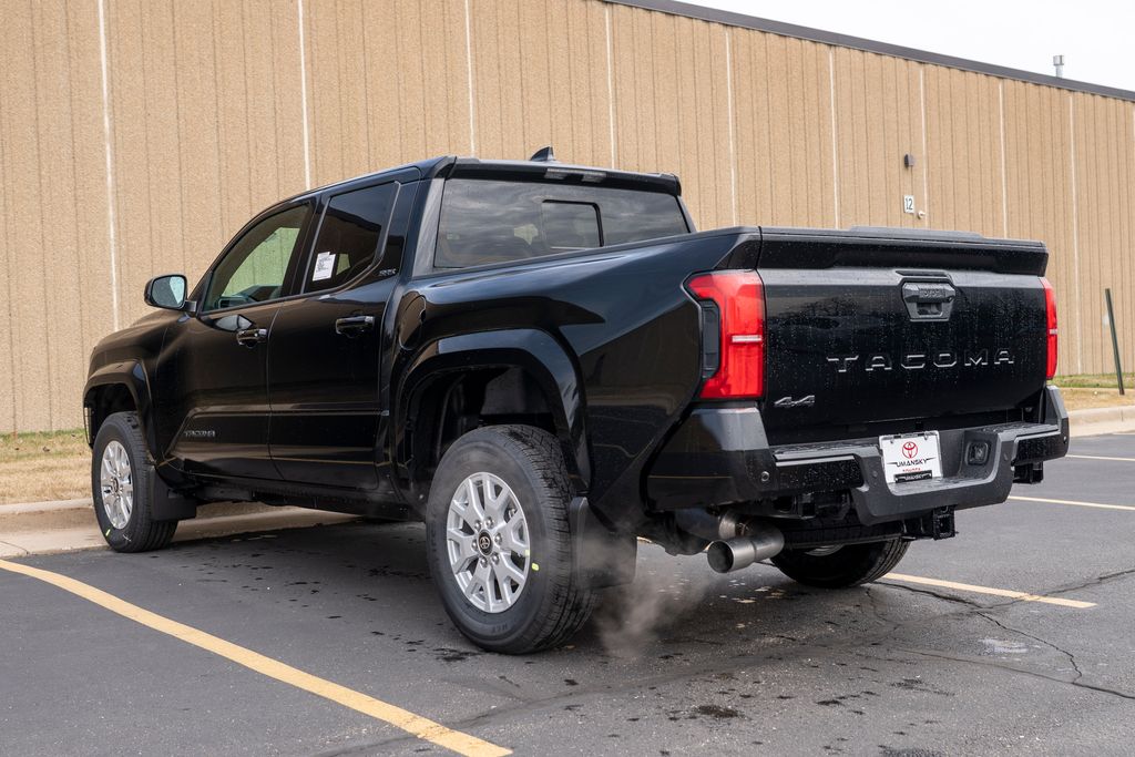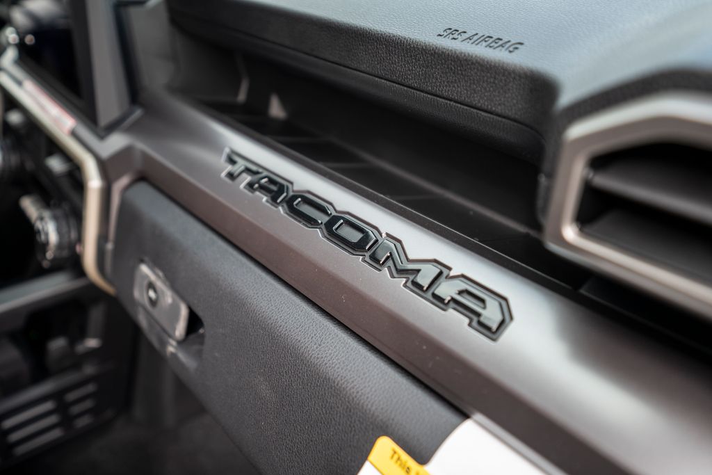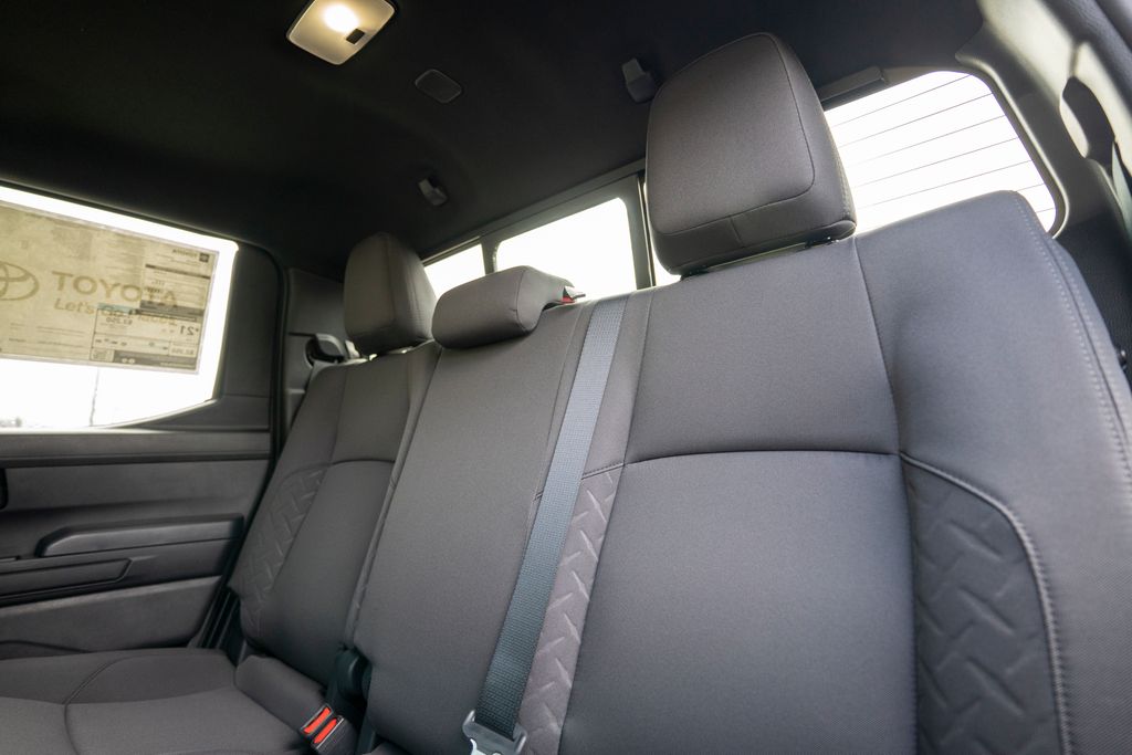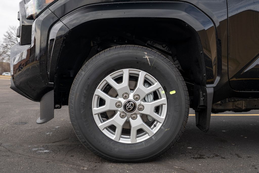 SR5 Upgrade Heat (JBL Premium Audio, Rear Underseat Storage Compartment, and TACOMA Stamped Easy Lower and Lift Tailgate), 4WD, 3.583 Axle Ratio, 4-Wheel Disc Brakes, 6 Speakers, ABS brakes, Air Conditioning, All Weather Floor Liners, Alloy wheels, AM/FM radio: SiriusXM, Anti-whiplash front head restraints, Apple CarPlay/Android Auto, Auto High-beam Headlights, Auto-dimming Rear-View mirror, Black Badge Overlay, Brake assist, Bumpers: body-color, Door Edge Guard, Driver door bin, Dual front impact airbags, Dual front side impact airbags, Electronic Stability Control, Emergency communication system: Safety Connect (up to 10-year trial subscription), Exterior Parking Camera Rear, Fabric Seat Trim, Four wheel independent suspension, Front anti-roll bar, Front Bucket Seats, Front Center Armrest, Front fog lights, Front reading lights, Fully automatic headlights, Heated door mirrors, Illuminated entry, Knee airbag, Low tire pressure warning, Mudguards, Occupant sensing airbag, Outside temperature display, Overhead airbag, Overhead console, Panic alarm, Passenger door bin, Power door mirrors, Power steering, Power windows, Radio: 8" Toyota Audio Multimedia, Rear step bumper, Rear window defroster, Remote keyless entry, Speed control, Speed-sensing steering, Split folding rear seat, Steering wheel mounted audio controls, Tachometer, Telescoping steering wheel, Tilt steering wheel, Traction control, Trip computer, Variably intermittent wipers, and Wheels: 17" Styled Alloy.