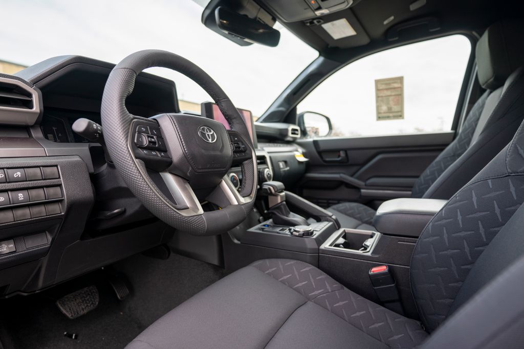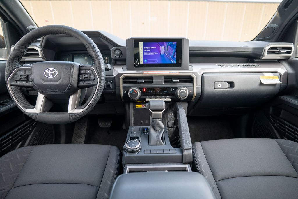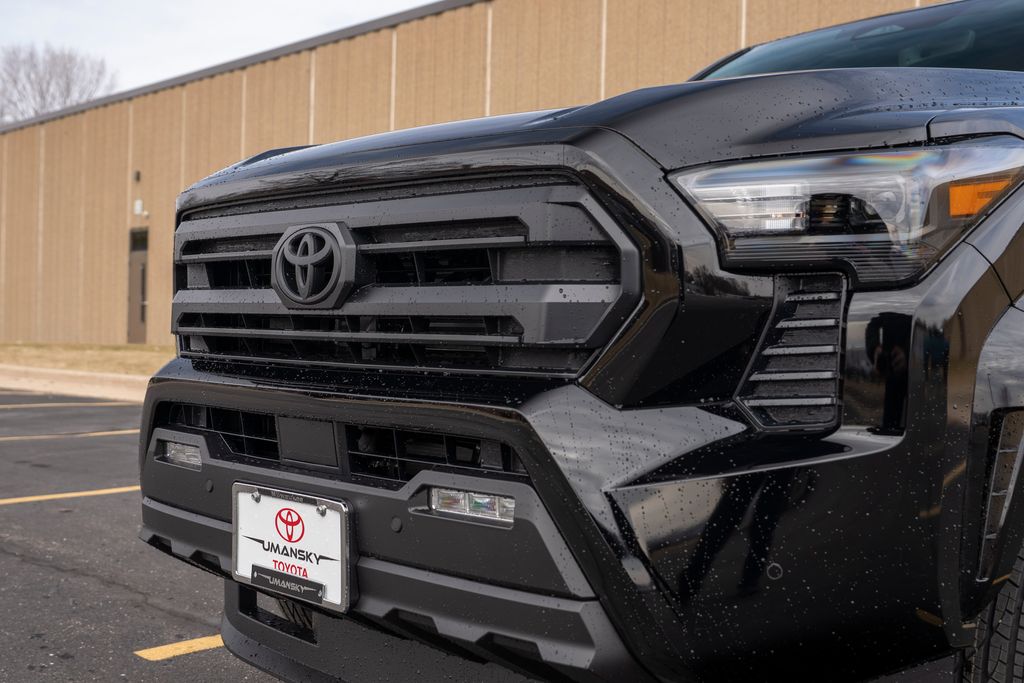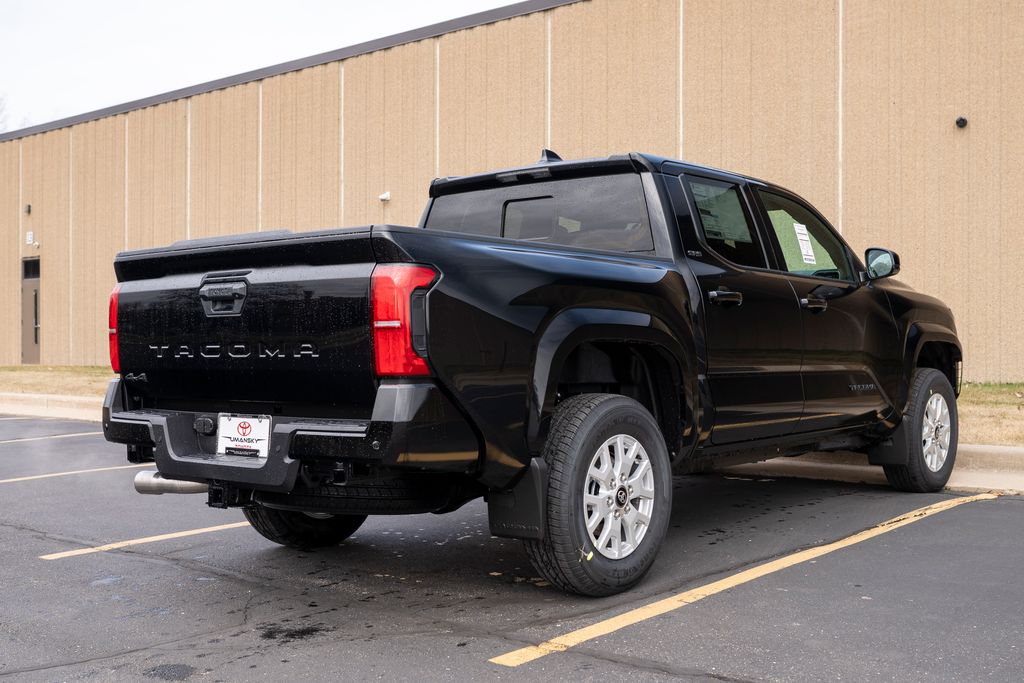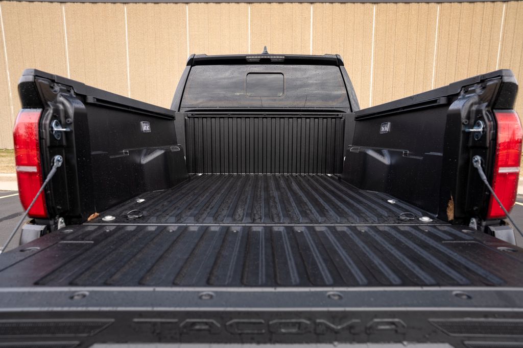 SR5 Upgrade Heat (JBL Premium Audio, Rear Underseat Storage Compartment, and TACOMA Stamped Easy Lower and Lift Tailgate), 4WD, 3.583 Axle Ratio, 4-Wheel Disc Brakes, 6 Speakers, ABS brakes, Air Conditioning, All Weather Floor Liners, Alloy wheels, AM/FM radio: SiriusXM, Anti-whiplash front head restraints, Apple CarPlay/Android Auto, Auto High-beam Headlights, Auto-dimming Rear-View mirror, Black Badge Overlay, Brake assist, Bumpers: body-color, Door Edge Guard, Driver door bin, Dual front impact airbags, Dual front side impact airbags, Electronic Stability Control, Emergency communication system: Safety Connect (up to 10-year trial subscription), Exterior Parking Camera Rear, Fabric Seat Trim, Four wheel independent suspension, Front anti-roll bar, Front Bucket Seats, Front Center Armrest, Front fog lights, Front reading lights, Fully automatic headlights, Heated door mirrors, Illuminated entry, Knee airbag, Low tire pressure warning, Mudguards, Occupant sensing airbag, Outside temperature display, Overhead airbag, Overhead console, Panic alarm, Passenger door bin, Power door mirrors, Power steering, Power windows, Radio: 8" Toyota Audio Multimedia, Rear step bumper, Rear window defroster, Remote keyless entry, Speed control, Speed-sensing steering, Split folding rear seat, Steering wheel mounted audio controls, Tachometer, Telescoping steering wheel, Tilt steering wheel, Traction control, Trip computer, Variably intermittent wipers, and Wheels: 17" Styled Alloy.
