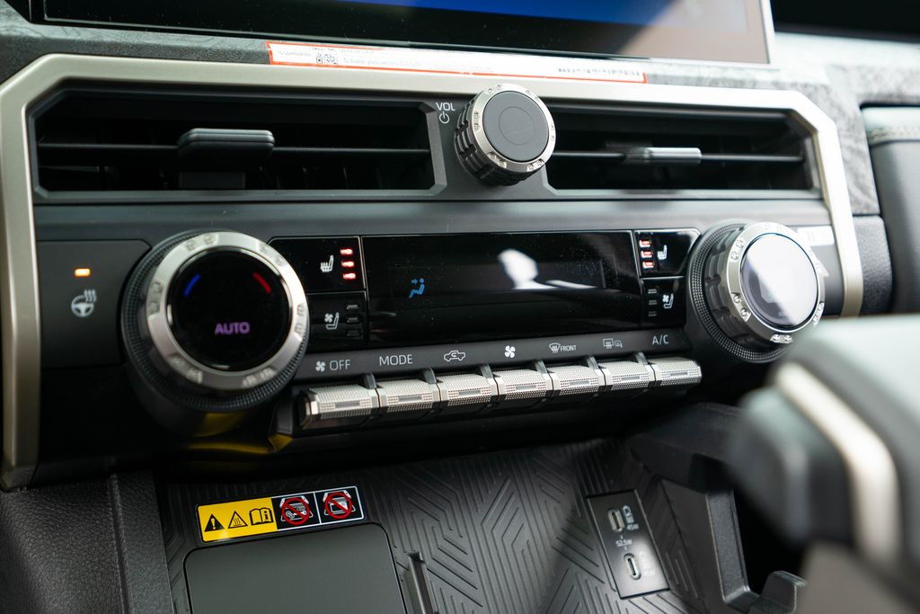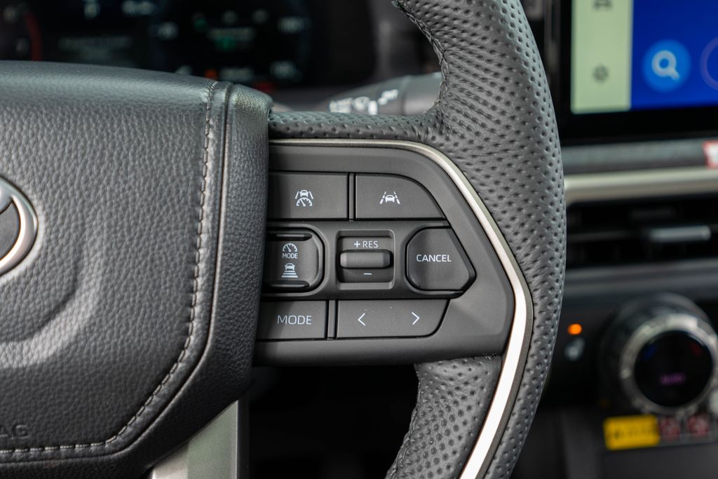 Limited Package, Tow Tech Package, 4WD, 3.583 Axle Ratio, 4-Wheel Disc Brakes, 9 Speakers, ABS brakes, Air Conditioning, Alloy wheels, AM/FM radio: SiriusXM, Anti-whiplash front head restraints, Apple CarPlay/Android Auto, Auto High-beam Headlights, Auto-dimming Rear-View mirror, Automatic temperature control, Bed Scene Lighting, Brake assist, Bumpers: body-color, Chrome wheels, Door Edge Guard, Driver door bin, Driver vanity mirror, Dual front impact airbags, Dual front side impact airbags, Electronic Stability Control, Emergency communication system: Safety Connect (up to 10-year trial subscription), Exterior Parking Camera Rear, Four wheel independent suspension, Front anti-roll bar, Front Bucket Seats, Front Center Armrest, Front dual zone A/C, Front fog lights, Front reading lights, Fully automatic headlights, Garage door transmitter: HomeLink, Hard Tri-Fold Tonneau Cover, Heads-Up Display, Heated and Ventilated Front Bucket Seats, Heated door mirrors, Heated front seats, Heated steering wheel, Illuminated entry, JBL Premium Audio, Knee airbag, Leather Shift Knob, Leather steering wheel, Low tire pressure warning, Navigation system: Drive Connect Cloud Navigation (1-year trial subscription), Occupant sensing airbag, Outside temperature display, Overhead airbag, Overhead console, Panic alarm, Passenger door bin, Passenger vanity mirror, Power door mirrors, Power driver seat, Power moonroof, Power passenger seat, Power steering, Power windows, Radio: 14" Toyota Audio Multimedia, Rear step bumper, Rear window defroster, Remote keyless entry, Security system, SofTex Seat Trim, Speed control, Speed-sensing steering, Split folding rear seat, Spray-on Bed Liner, Steering wheel mounted audio controls, Tachometer, Telescoping steering wheel, Tilt steering wheel, Traction control, Trip computer, Turn signal indicator mirrors, Variably intermittent wipers, Ventilated front seats, Wheel Locks, and Wheels: 18" Chrome-Finished Alloy.