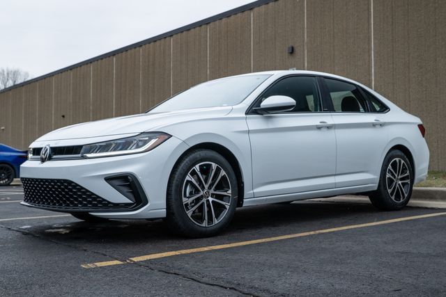 Pure White 2026 Volkswagen Jetta 1.5T Sport FWD 8-Speed Automatic with Tiptronic 1.5L I-4 DI DOHC Turbocharged Titan Black Cloth.