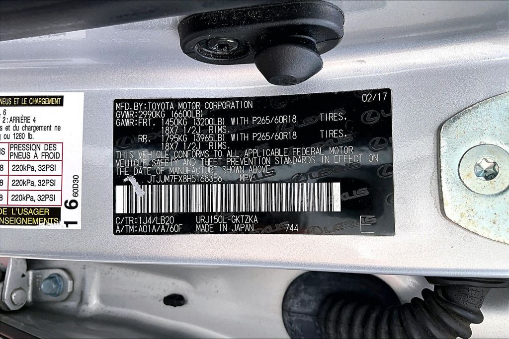 Silver Lining Metallic 2017 Lexus GX 460 Luxury 4WD 6-Speed Automatic with Sequential Shift ECT 4.6L V8 DOHC Dual VVT-i 32V Bluetooth, Backup Camera, Navigation, Third Row Seating, 4WD.