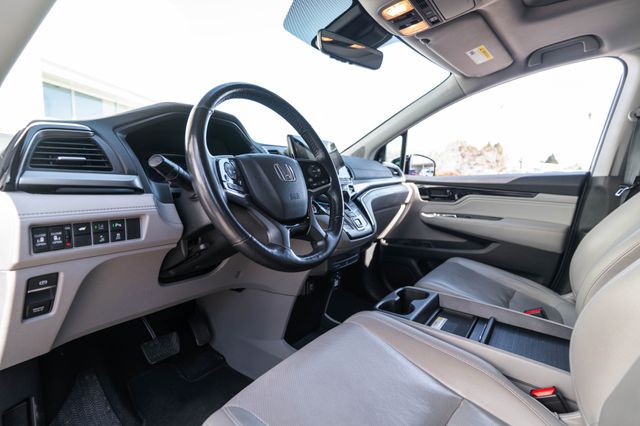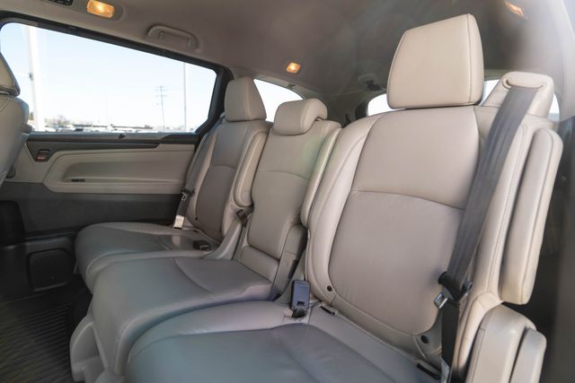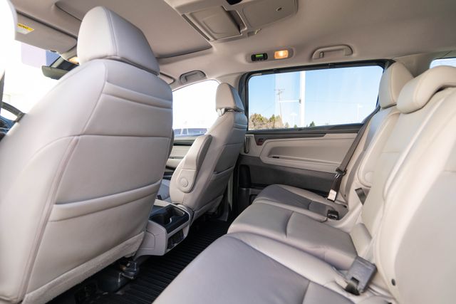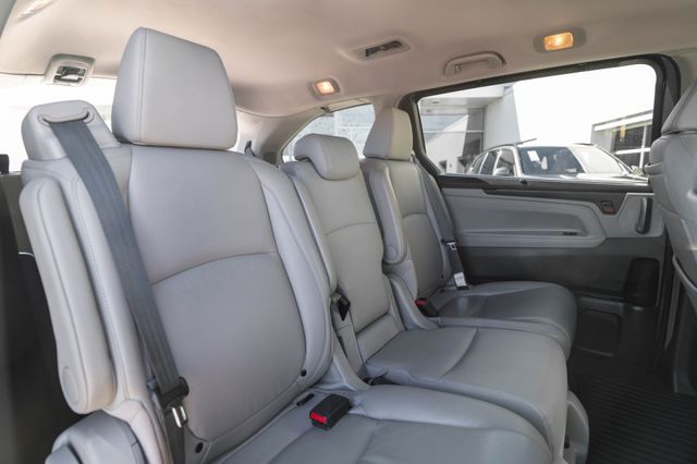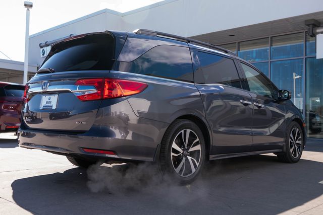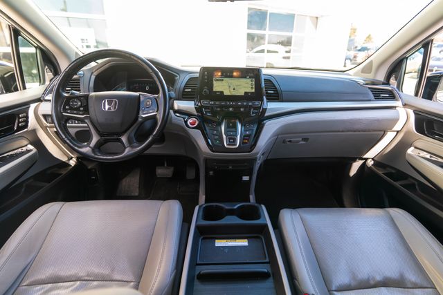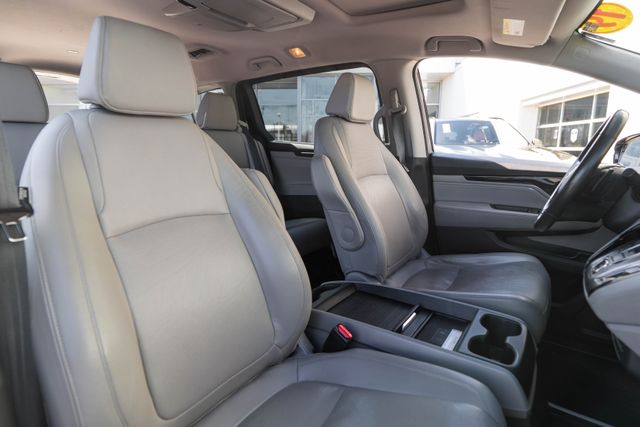 Odyssey Elite, 4D Passenger Van, 3.5L V6 SOHC i-VTEC 24V, Gray, Beige Leather, 11 Speakers, 3.61 Axle Ratio, 3rd row seats: split-bench, 4-Wheel Disc Brakes, A/V remote: CabinControl, ABS brakes, Air Conditioning, Alloy wheels, AM/FM radio: SiriusXM, Anti-whiplash front head restraints, Apple CarPlay/Android Auto, Auto High-beam Headlights, Auto-dimming Rear-View mirror, Automatic temperature control, Blind Spot Information (BSI) System warning, Brake assist, Bumpers: body-color, CD player, Compass, Delay-off headlights, Driver door bin, Driver vanity mirror, Driver's Seat Mounted Armrest, Dual front impact airbags, Dual front side impact airbags, DVD-Audio, Electronic Stability Control, Emergency communication system: HondaLink, Exterior Parking Camera Rear, Forward collision: Collision Mitigation Braking System (CMBS) + FCW mitigation, Four wheel independent suspension, Front anti-roll bar, Front Bucket Seats, Front dual zone A/C, Front fog lights, Front reading lights, Fully automatic headlights, Garage door transmitter: HomeLink, Headphones, Heated & Ventilated Front Bucket Seats, Heated door mirrors, Heated front seats, Heated steering wheel, Illuminated entry, Knee airbag, Lane departure: Lane Keeping Assist System (LKAS) active, Leather Seat Trim, Leather steering wheel, Low tire pressure warning, Memory seat, Navigation system: Honda Satellite-Linked Navigation System, Occupant sensing airbag, Outside temperature display, Overhead airbag, Overhead console, Panic alarm, Passenger door bin, Passenger seat mounted armrest, Passenger vanity mirror, Power door mirrors, Power driver seat, Power Liftgate, Power moonroof, Power passenger seat, Power steering, Power windows, Radio data system, Radio: 550-Watt AM/FM/HD Premium Audio System, Rain sensing wipers, Rear air conditioning, Rear anti-roll bar, Rear audio controls, Rear reading lights, Rear seat center armrest, Rear window defroster, Rear window w