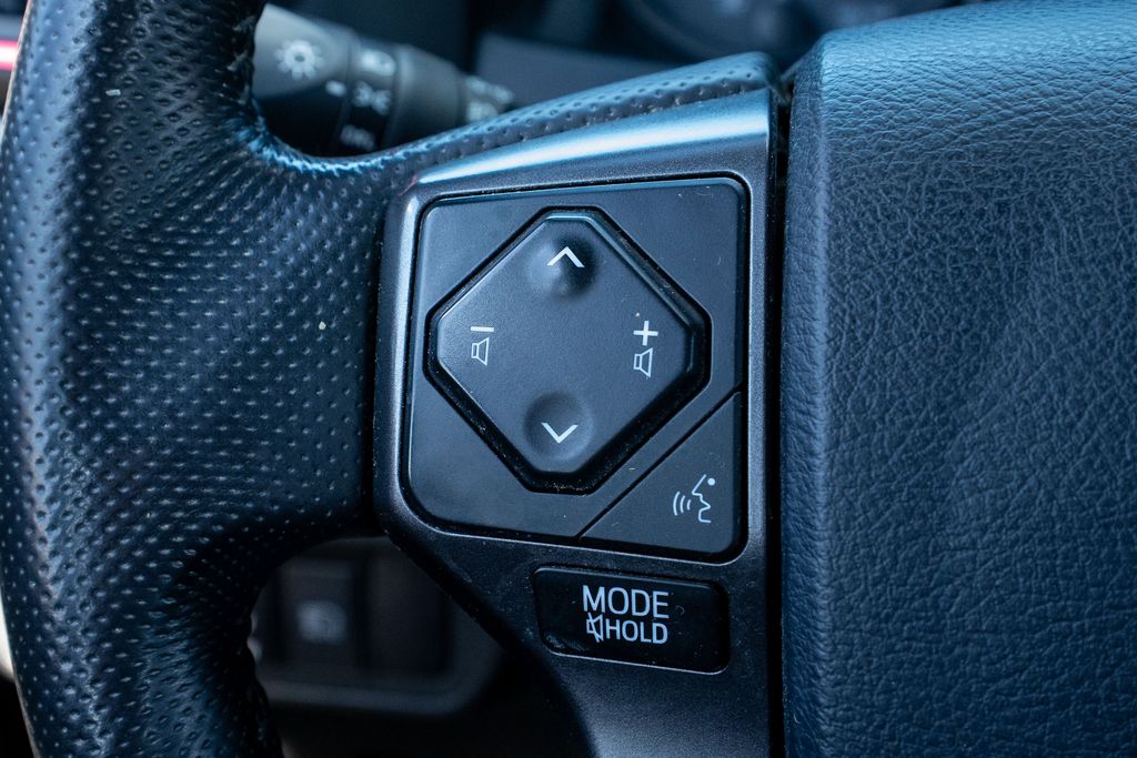 Technology Package (Blind Spot Monitor w/Rear Cross Traffic Alert, Color Keyed Rear Bumper, and Rear Parking Assist Sonar), TRD Off Road Package (120V/400W Deck Mounted AC Power, Auto-Dimming Inside Rear-View Mirror w/Compass, Black Overfenders, Engine Immobilizer, LED Daytime Running Lamps, Smart Key w/Push Button Start, and Wide Angle Front Fog Lamps), 4WD, ABS brakes, Active Cruise Control, Air Conditioning, Alloy wheels, Electronic Stability Control, Exhaust Tip, Illuminated entry, Low tire pressure warning, Remote keyless entry, Traction control, Wheels: 16" x 7" Machined Contrast Alloy, 6 Speakers, AM/FM radio: SiriusXM, Anti-whiplash front head restraints, Auto High-beam Headlights, Auto-dimming Rear-View mirror, Axle Ratio: 3.91, Brake assist, Bumpers: body-color, CD player, Driver door bin, Dual front impact airbags, Dual front side impact airbags, Exterior Parking Camera Rear, Fabric Seat Trim (FD), Front anti-roll bar, Front Bucket Seats, Front Center Armrest, Front fog lights, Front reading lights, Front wheel independent suspension, Knee airbag, Leather Shift Knob, Occupant sensing airbag, Outside temperature display, Overhead airbag, Overhead console, Panic alarm, Passenger door bin, Power door mirrors, Power steering, Power windows, Radio: Entune Premium w/AM/FM/CD/Nav/App Suite, Rear step bumper, Security system, Speed control, Speed-sensing steering, Split folding rear seat, Steering wheel mounted audio controls, Tachometer, Telescoping steering wheel, Tilt steering wheel, Trip computer, Turn signal indicator mirrors, and Variably intermittent wipers.