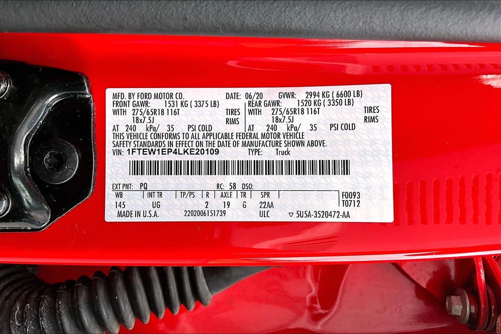 Race Red 2020 Ford F-150 XLT 4WD 10-Speed Automatic 2.7L V6 EcoBoost Bluetooth, Backup Camera, Navigation, 4WD, 4WD, 10-Way Power Driver & Passenger Seats, 4.2" Productivity Screen in Instrument Cluster, Cloth 40/20/40 Front Seat, Equipment Group 302A Luxury, Fixed Backlight w/Privacy Glass, Heated Front Seats, Leather-Wrapped Steering Wheel, Power Glass Heated Sideview Mirrors, Power-Adjustable Pedals, Rear Under-Seat Storage, Rear Window Defroster, SiriusXM Radio, XLT Chrome Appearance Package.