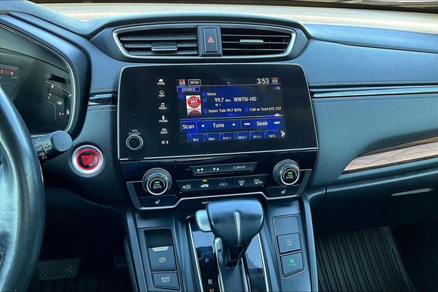 The 2020 Honda CR-V Touring is a top-tier compact SUV that offers a premium blend of comfort, efficiency, and advanced technologyperfect for drivers across Middle Tennessee, from Murfreesboro to Nashville and beyond. Powered by a responsive 1.5L turbocharged engine producing 190 horsepower, the CR-V Touring delivers a smooth, fuel-efficient ride with up to 32 MPG on the highway, making it ideal for daily commutes and long road trips. Inside, youll find an upscale cabin featuring leather-trimmed seating, a heated steering wheel, dual-zone climate control, and a premium audio system, along with a hands-free power liftgate for added convenience. With generous cargo space and flexible seating for five, its built for both family life and weekend adventures. Equipped with Honda Sensing safety features like adaptive cruise control, lane-keeping assist, blind spot monitoring, and collision mitigation braking, the 2020 CR-V Touring provides confidence and peace of mind on busy Tennessee roads, making it a smart and reliable choice for Middle TN drivers.