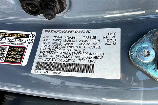 Sonic Gray Pearl 2020 Honda CR-V Touring 1.5L I4 DOHC 16V CVT AWD 27/32 City/Highway MPG