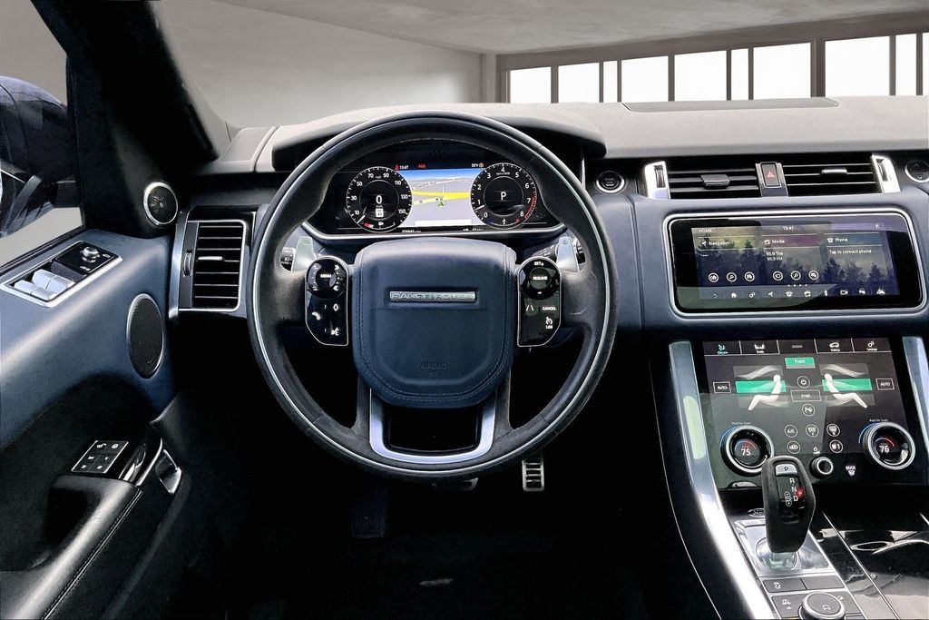 16-Way Heated/Cooled HST Front Seats w/Memory, 19 Speakers, 3.55 Axle Ratio, 4-Wheel Disc Brakes, ABS brakes, Adaptive suspension, Air Conditioning, Alloy wheels, AM/FM radio: SiriusXM, Apple CarPlay & Android Auto, Auto High-beam Headlights, Auto tilt-away steering wheel, Auto-dimming door mirrors, Auto-dimming Rear-View mirror, Auto-leveling suspension, Automatic temperature control, Brake assist, Bumpers: body-color, Child-Seat-Sensing Airbag, Compass, Delay-off headlights, Driver door bin, Driver vanity mirror, Dual front impact airbags, Dual front side impact airbags, Electronic Stability Control, Emergency communication system: InControl Protect, Four wheel independent suspension, Front anti-roll bar, Front Bucket Seats, Front Center Armrest w/Storage, Front dual zone A/C, Front fog lights, Front reading lights, Fully automatic headlights, Garage door transmitter: HomeLink, Head restraints memory, Headlight cleaning, Heated door mirrors, Heated front seats, Heated rear seats, Illuminated entry, Leather Shift Knob, Low tire pressure warning, Memory seat, Navigation System, Occupant sensing airbag, Outside temperature display, Overhead airbag, Overhead console, Panic alarm, Passenger door bin, Passenger vanity mirror, Perforated Windsor Leather w/Suedecloth Seat Trim, Power adjustable front head restraints, Power door mirrors, Power driver seat, Power Liftgate, Power moonroof, Power passenger seat, Power steering, Power windows, Radio data system, Radio: Meridian Surround Sound System (825W), Rain sensing wipers, Rear air conditioning, Rear anti-roll bar, Rear fog lights, Rear reading lights, Rear seat center armrest, Rear window defroster, Rear window wiper, Remote keyless entry, Security system, Speed control, Speed-sensing steering, Speed-Sensitive Wipers, Split folding rear seat, Spoiler, Steering wheel memory, Steering wheel mounted audio controls, Tachometer, Telescoping steering wheel, Tilt steering wheel, Traction control, Trip computer, Turn signal indicator mirrors, Variably intermittent wipers, Ventilated front seats, and Wheels: 21" 9 Spoke Gloss Black 'Style 9001'