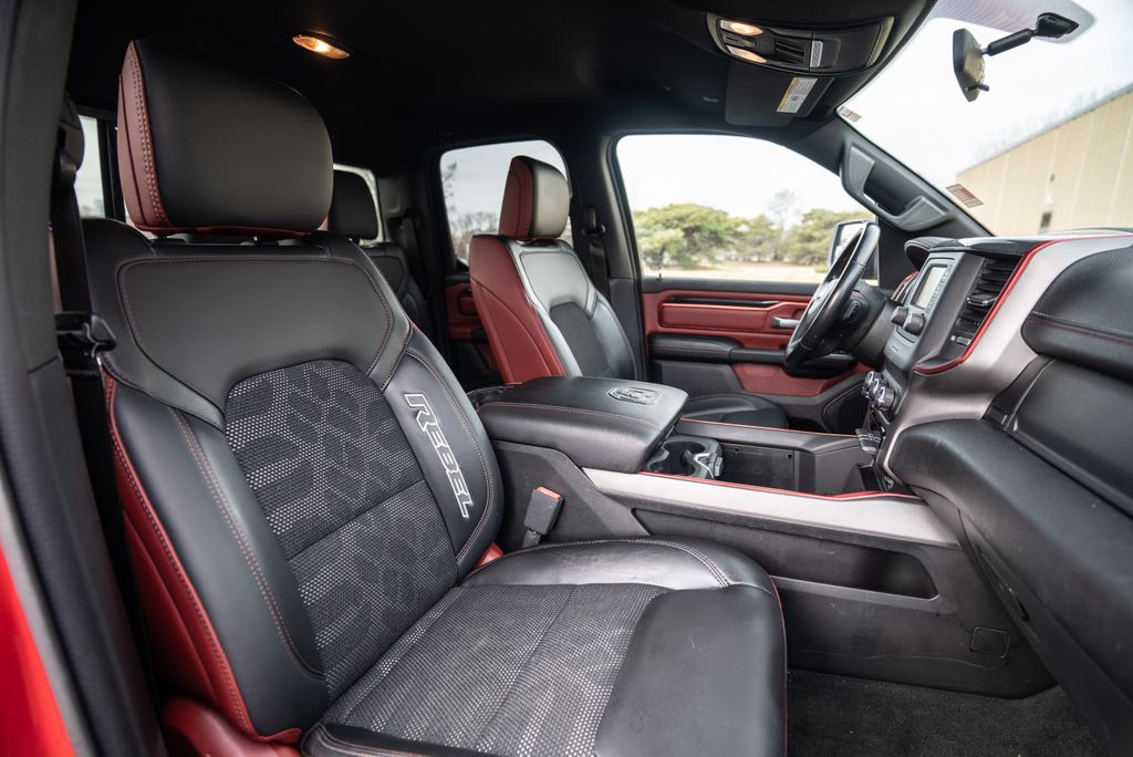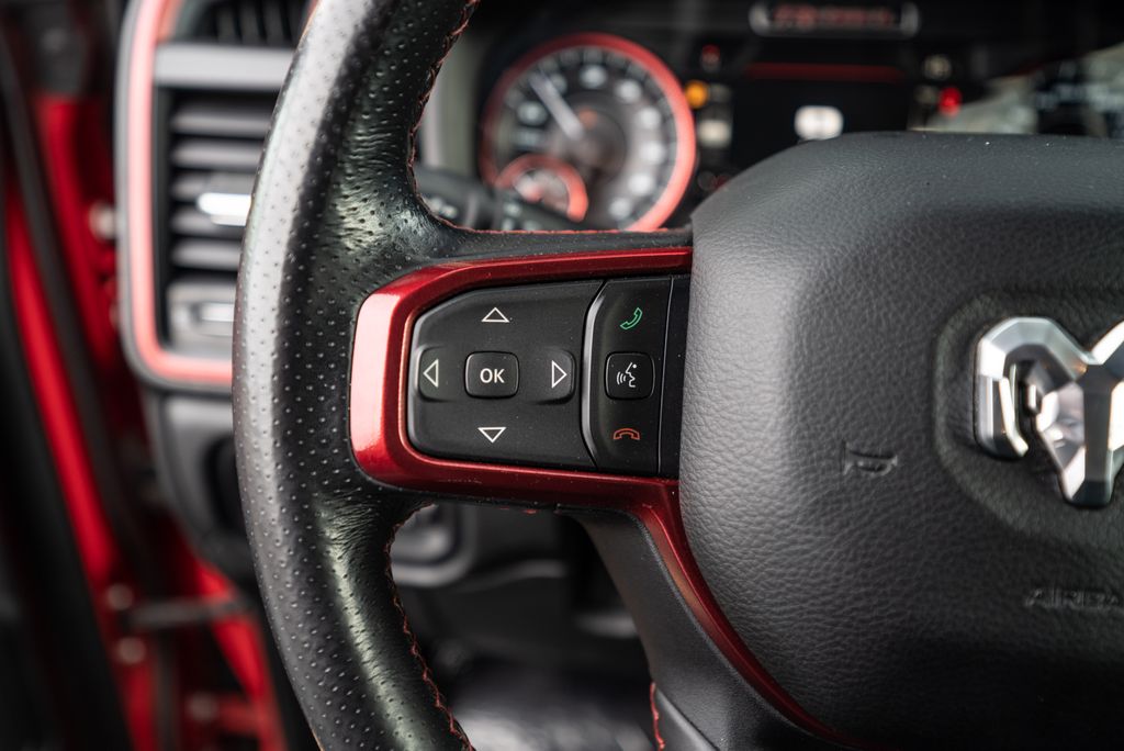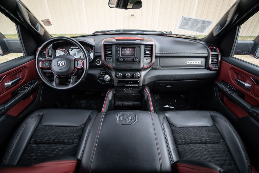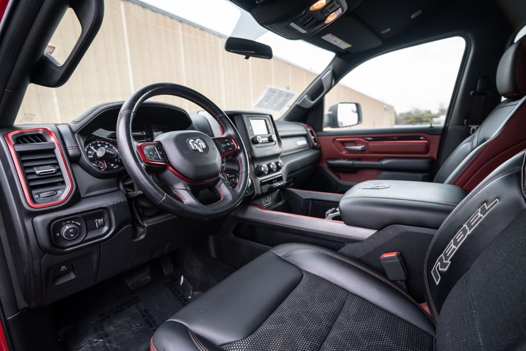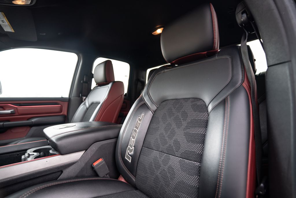 Quick Order Package 25W Rebel (Body Color Door Handles), Alloy wheels, Wheels: 18" x 8" Painted Black, 1-Year SiriusXM Radio Service, 3.92 Rear Axle Ratio, 4 Way Front Headrests, 4-Wheel Disc Brakes, 48V Belt Starter Generator, 6 Speakers, ABS brakes, Air Conditioning, AM/FM radio: SiriusXM, Brake assist, Cloth/Vinyl Low Back Bucket Seats, Compass, Delay-off headlights, Driver door bin, Dual front impact airbags, Dual front side impact airbags, Electronic Stability Control, Front anti-roll bar, Front Bucket Seats, Front Center Armrest w/Storage, Front fog lights, Front reading lights, Front Seat Back Map Pockets, Front wheel independent suspension, Fully automatic headlights, GPS Antenna Input, Heated door mirrors, Illuminated entry, Leather steering wheel, Low tire pressure warning, Manufacturer's Statement of Origin, Occupant sensing airbag, Outside temperature display, Overhead airbag, Overhead console, Panic alarm, ParkView Rear Back-Up Camera, Passenger door bin, Passenger vanity mirror, Power door mirrors, Power driver seat, Power steering, Power windows, Radio data system, Radio: Uconnect 3 w/5" Display, Rear 60/40 Folding Seat, Rear anti-roll bar, Rear seat center armrest, Rear step bumper, Remote keyless entry, SiriusXM Satellite Radio, Speed control, Split folding rear seat, Steering wheel mounted audio controls, Tachometer, Telescoping steering wheel, Tilt steering wheel, Traction control, Trip computer, Variably intermittent wipers, and Voltmeter.