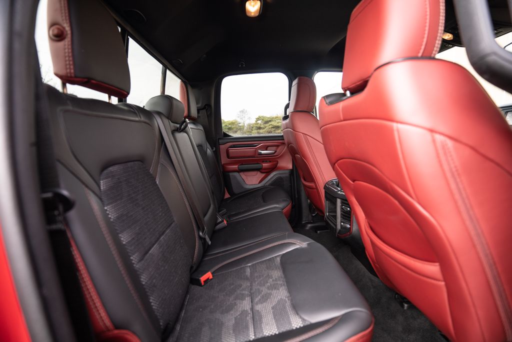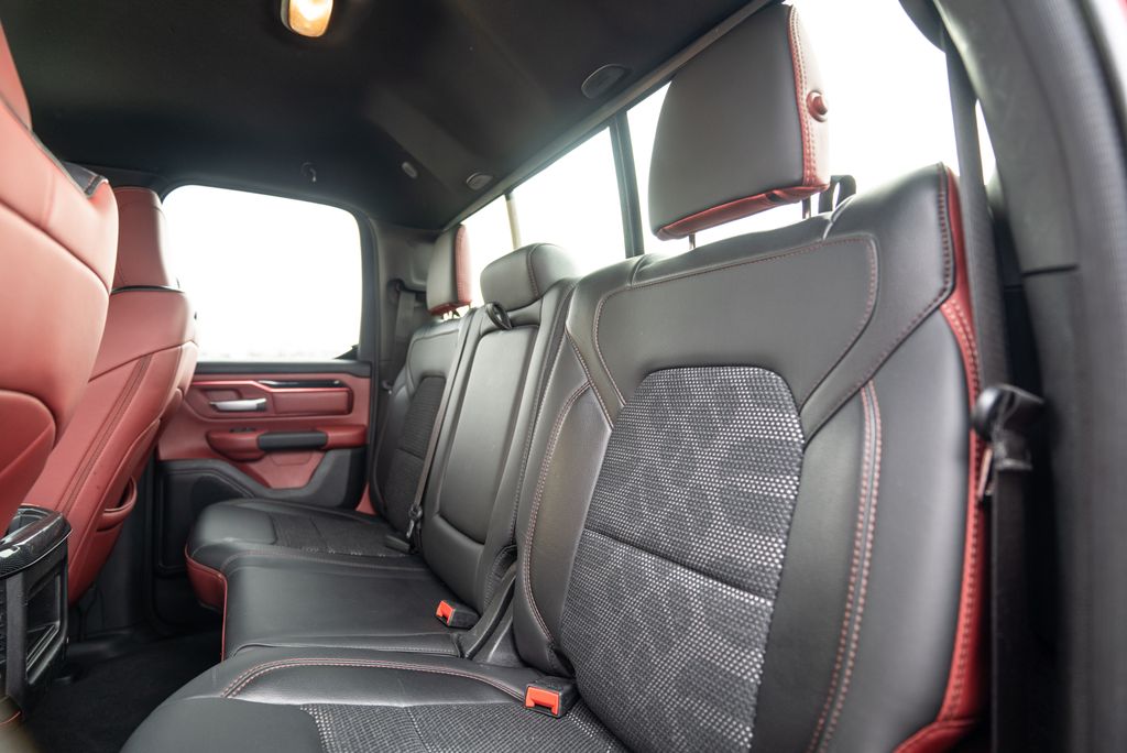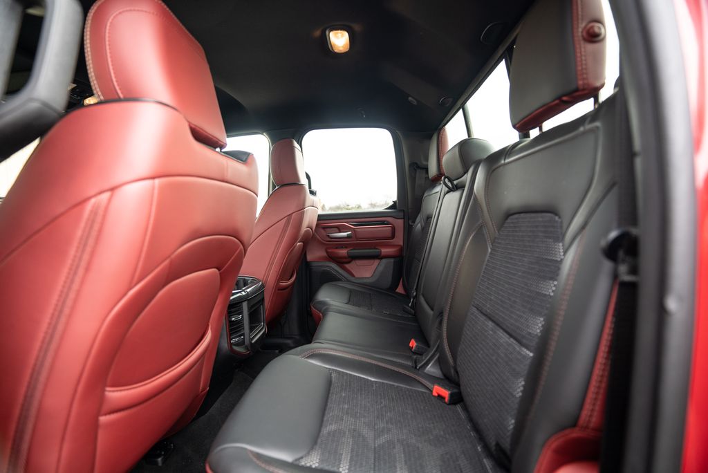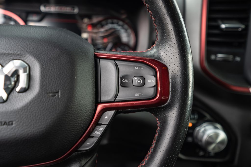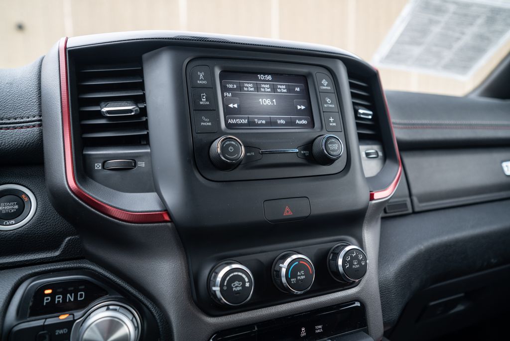 Quick Order Package 25W Rebel (Body Color Door Handles), Alloy wheels, Wheels: 18" x 8" Painted Black, 1-Year SiriusXM Radio Service, 3.92 Rear Axle Ratio, 4 Way Front Headrests, 4-Wheel Disc Brakes, 48V Belt Starter Generator, 6 Speakers, ABS brakes, Air Conditioning, AM/FM radio: SiriusXM, Brake assist, Cloth/Vinyl Low Back Bucket Seats, Compass, Delay-off headlights, Driver door bin, Dual front impact airbags, Dual front side impact airbags, Electronic Stability Control, Front anti-roll bar, Front Bucket Seats, Front Center Armrest w/Storage, Front fog lights, Front reading lights, Front Seat Back Map Pockets, Front wheel independent suspension, Fully automatic headlights, GPS Antenna Input, Heated door mirrors, Illuminated entry, Leather steering wheel, Low tire pressure warning, Manufacturer's Statement of Origin, Occupant sensing airbag, Outside temperature display, Overhead airbag, Overhead console, Panic alarm, ParkView Rear Back-Up Camera, Passenger door bin, Passenger vanity mirror, Power door mirrors, Power driver seat, Power steering, Power windows, Radio data system, Radio: Uconnect 3 w/5" Display, Rear 60/40 Folding Seat, Rear anti-roll bar, Rear seat center armrest, Rear step bumper, Remote keyless entry, SiriusXM Satellite Radio, Speed control, Split folding rear seat, Steering wheel mounted audio controls, Tachometer, Telescoping steering wheel, Tilt steering wheel, Traction control, Trip computer, Variably intermittent wipers, and Voltmeter.