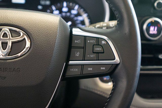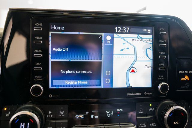 Highlander XLE, 4D Sport Utility, 3.5L V6 DOHC, AWD, Black, 18" Machined Alloy Wheels, 3.003 Axle Ratio, 3rd row seats: split-bench, 4-Wheel Disc Brakes, 6 Speakers, ABS brakes, Air Conditioning, Alloy wheels, AM/FM radio: SiriusXM, Apple CarPlay/Android Auto, Auto High-beam Headlights, Auto-dimming Rear-View mirror, Automatic temperature control, Brake assist, Bumpers: body-color, Delay-off headlights, Driver door bin, Driver vanity mirror, Dual front impact airbags, Dual front side impact airbags, Electronic Stability Control, Emergency communication system: Safety Connect with 1-year trial, Exterior Parking Camera Rear, Four wheel independent suspension, Front anti-roll bar, Front Bucket Seats, Front Center Armrest, Front dual zone A/C, Front fog lights, Front reading lights, Fully automatic headlights, Garage door transmitter: HomeLink, Heated door mirrors, Heated Front Bucket Seats, Heated front seats, Illuminated entry, Knee airbag, Leather Shift Knob, Low tire pressure warning, Occupant sensing airbag, Outside temperature display, Overhead airbag, Overhead console, Panic alarm, Passenger door bin, Passenger vanity mirror, Power door mirrors, Power driver seat, Power Liftgate, Power moonroof, Power passenger seat, Power steering, Power windows, Radio: Audio Plus, Rear air conditioning, Rear anti-roll bar, Rear reading lights, Rear window defroster, Rear window wiper, Reclining 3rd row seat, Remote keyless entry, Roof rack: rails only, Security system, SofTex Seat Trim, Speed control, Speed-sensing steering, Split folding rear seat, Spoiler, Steering wheel mounted audio controls, Tachometer, Telescoping steering wheel, Tilt steering wheel, Traction control, Trip computer, Turn signal indicator mirrors, and Variably intermittent wipers.