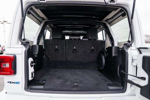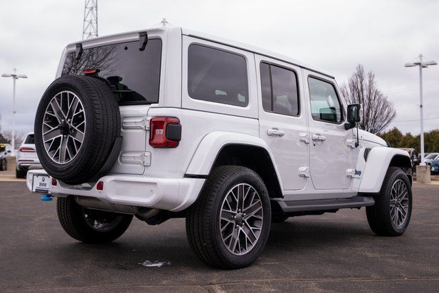 Advanced Safety Group (Adaptive Cruise Control w/Stop, Advanced Brake Assist, Auto High Beam Headlamp Control, and Full Speed Forward Collision Warning Plus), Cold Weather Group (Heated Front Seats, Heated Steering Wheel, and Remote Start System), High Altitude Package, Quick Order Package 29N High Altitude (Body Color 3-Piece Hard Top, Body Color Door Handles, Body Color Front Bumper, Body Color Grille w/Gloss Black Rings, Body Color Power Locking Fuel Filler Door, Body Color Rear Bumper w/Step Pads, Exterior Mirrors w/Supplemental Signals, Leather Trimmed Bucket Seats, Premium Dark Exterior Accents, Summit Badging, Wheels: 20" x 8.0" Fully Painted Aluminum, Wrapped I/P Bezel w/Caramel Stitch, Freedom Panel Storage Bag, Rear Window Defroster, and Rear Window Wiper/Washer), Safety Group (Blind Spot & Cross Path Detection and ParkSense Rear Park Assist System), Wrangler Unlimited Sahara High Altitude 4xe, 4D Sport Utility, 2.0L I4 DOHC, 4WD, Bright White Clearcoat, Black Leather, 3.73 Rear Axle Ratio, 4-Wheel Disc Brakes, 9 Speakers, ABS brakes, Air Conditioning, Alloy wheels, AM/FM radio, Anti-Spin Differential Rear Axle, Apple CarPlay/Android Auto, Auto-dimming Rear-View mirror, Automatic temperature control, Brake assist, Compass, Corning Gorilla Glass, Delay-off headlights, Driver door bin, Driver vanity mirror, Dual front impact airbags, Dual front side impact airbags, Electronic Stability Control, Emergency communication system: SiriusXM Guardian, Front anti-roll bar, Front Bucket Seats, Front Center Armrest w/Storage, Front dual zone A/C, Front fog lights, Front License Plate Bracket, Front reading lights, Fully automatic headlights, Garage door transmitter, Heated door mirrors, Illuminated entry, Integrated roll-over pr
