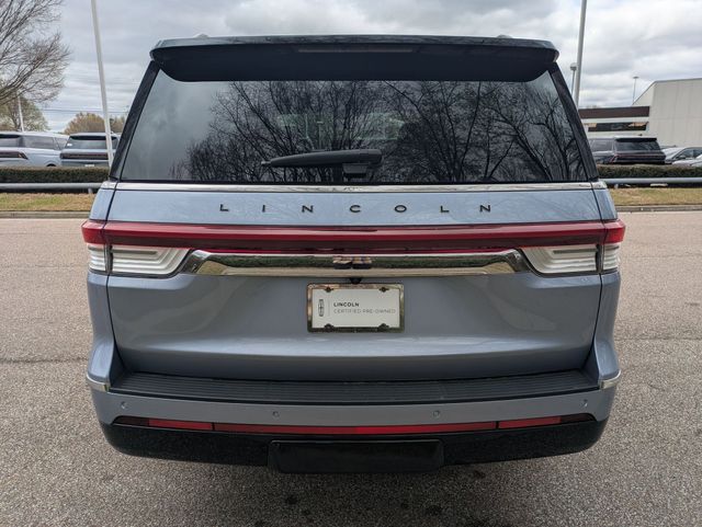 Experience the pinnacle of luxury travel with this Certified Pre-Owned 2022 Lincoln Navigator Black Label, featuring the exclusive Special Edition Package, now available at Lincoln of Memphis. This flagship SUV is powered by a high-output Twin-Turbocharged 3.5L V6 engine and a smooth 10-speed automatic transmission, delivering effortless power through its advanced 4WD system. Dressed in a rare Chroma Crystal Blue Metallic exterior and accented by the Special Edition’s black-painted roof and unique 22-inch black aluminum wheels, this Navigator commands a presence unlike any other on the road.