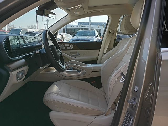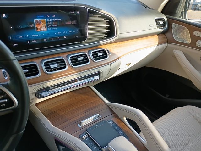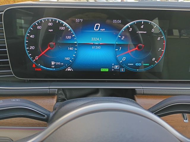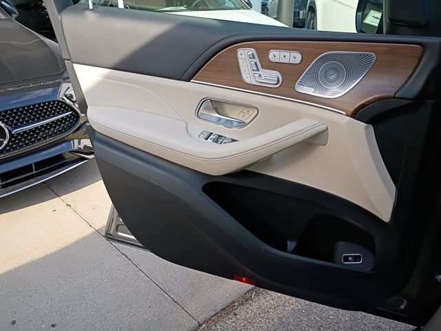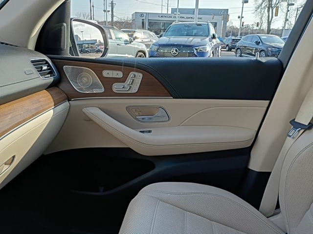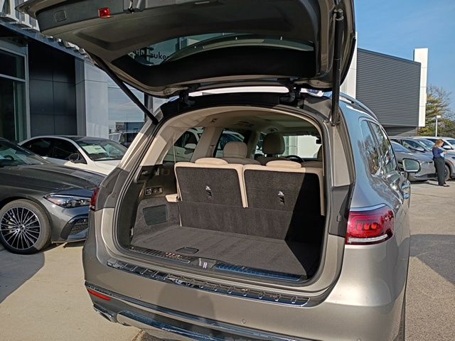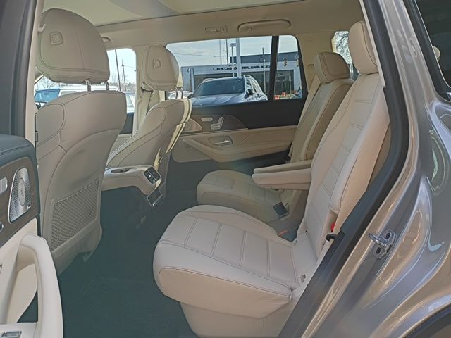 13 Speakers, 3.27 Axle Ratio, 3rd row seats: split-bench, 4-Wheel Disc Brakes, 7-Seat Configuration, ABS brakes, Active Brake Assist w/Cross-Traffic Function, Adaptive suspension, Air Conditioning, Alloy wheels, AM/FM radio: SiriusXM, Apple CarPlay®/Android Auto®, Auto High-beam Headlights, Auto tilt-away steering wheel, Auto-dimming door mirrors, Auto-dimming Rear-View mirror, Auto-leveling suspension, Automatic temperature control, Brake assist, Bumpers: body-color, Child-Seat-Sensing Airbag, Compass, Delay-off headlights, Driver door bin, Driver vanity mirror, Dual front impact airbags, Dual front side impact airbags, Electronic Stability Control, Emergency communication system: eCall Emergency System, Four wheel independent suspension, Front anti-roll bar, Front Bucket Seats, Front Center Armrest w/Storage, Front dual zone A/C, Front reading lights, Fully automatic headlights, Garage door transmitter: HomeLink, Genuine wood console insert, Genuine wood dashboard insert, Genuine wood door panel insert, Head restraints memory, Heated and Ventilated Power Front Seats w/Memory, Heated door mirrors, Heated front seats, Illuminated entry, Knee airbag, Low tire pressure warning, MB-Tex Upholstery, Memory seat, Navigation system: MB Navigation, Occupant sensing airbag, Outside temperature display, Overhead airbag, Overhead console, Panic alarm, Passenger door bin, Passenger vanity mirror, Power adjustable front head restraints, Power door mirrors, Power driver seat, Power Liftgate, Power moonroof, Power passenger seat, Power steering, Power windows, Premium audio system: MBUX, Radio: MBUX Multimedia System, Rain sensing wipers, Rear air conditioning, Rear anti-roll bar, Rear dual zone A/C, Rear fog lights, Rear reading lights, Rear seat center armrest, Rear window defroster, Rear window wiper, Remote keyless entry, Roof rack: rails only, Security system, Speed control, Speed-sensing steering, Speed-Sensitive Wipers, Split folding rear seat, Spoiler, Steering wheel memory, Steering wheel mounted audio controls, Tachometer, Telescoping steering wheel, Tilt steering wheel, Traction control, Trip computer, Turn signal indicator mirrors, Variably intermittent wipers, Ventilated front seats, Weather band radio, and Wheels: 20" 8-Spoke.