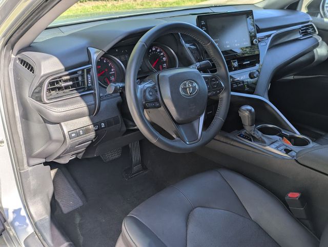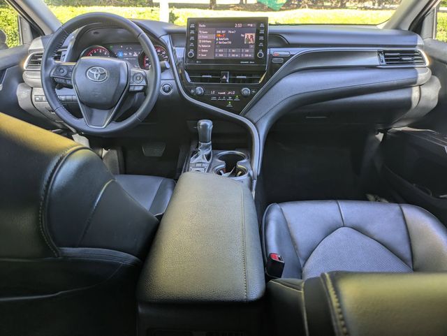 Discover the perfect intersection of reliability and sport-inspired styling with the 2022 Toyota Camry XSE, now available at Maserati of Memphis. This top-tier trim level stands out with its aggressive gloss-black grille, dual exhaust with quad chrome tips, and striking 19-inch black alloy wheels. Powered by a responsive 2.5L I4 engine and a smooth 8-speed automatic transmission, the Camry XSE offers an engaging driving experience with a sport-tuned suspension that handles Memphis commutes and weekend getaways with equal poise.