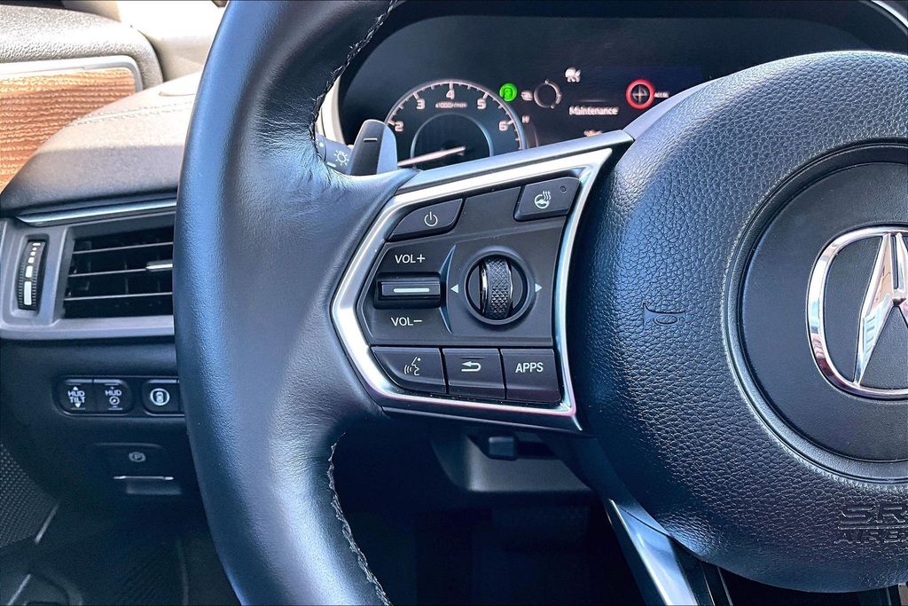 17 Speakers, 4-Wheel Disc Brakes, ABS brakes, Acura Navigation System w/3D View, Adaptive suspension, Air Conditioning, Alloy wheels, AM/FM radio: SiriusXM, Anti-whiplash front head restraints, Apple CarPlay/Android Auto, Auto High-beam Headlights, Auto-dimming door mirrors, Auto-dimming Rear-View mirror, Automatic temperature control, Brake assist, Bumpers: body-color, Compass, Delay-off headlights, Driver door bin, Driver vanity mirror, Dual front impact airbags, Dual front side impact airbags, Electronic Stability Control, Emergency communication system: AcuraLink, Four wheel independent suspension, Front anti-roll bar, Front Bucket Seats, Front Center Armrest w/Storage, Front dual zone A/C, Front fog lights, Front reading lights, Garage door transmitter: HomeLink, Genuine wood console insert, Genuine wood dashboard insert, Genuine wood door panel insert, Heads-Up Display, Heated & Ventilated Front Sport Seats, Heated door mirrors, Heated front seats, Heated rear seats, Heated steering wheel, HVAC memory, Illuminated entry, Knee airbag, Lane departure: Lane Keeping Assist System (LKAS) active, Leather steering wheel, Low tire pressure warning, Memory seat, Navigation system: Acura Navigation System with 3D View, Occupant sensing airbag, Outside temperature display, Overhead airbag, Overhead console, Panic alarm, Passenger door bin, Passenger vanity mirror, Power door mirrors, Power driver seat, Power moonroof, Power passenger seat, Power steering, Power windows, Prem Perforated Milano Leather Interior, Premium audio system: Acura/ELS Surround, Radio data system, Radio: ELS Studio 3D Premium Audio System, Rain sensing wipers, Rear anti-roll bar, Rear reading lights, Rear seat center armrest, Rear window defroster, Remote keyless entry, Security system, Speed control, Speed-sensing steering, Speed-Sensitive Wipers, Split folding rear seat, Steering wheel mounted audio controls, Tachometer, Telescoping steering wheel, Tilt steering wheel, Traction control, Trip computer, Turn signal indicator mirrors, Variably intermittent wipers, Ventilated front seats, and Wheels: 19" x 8.5" Pewter Gray Metallic Interwoven.