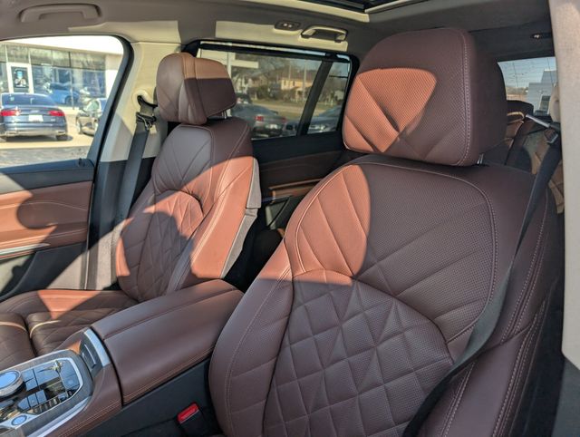 Climate Comfort Package (5-Zone Automatic Climate Control, Front & Rear Heated Seats, and Front Ventilated Seats), Connected Package Pro, Driving Assistance Professional Package (Active Driving Assistant Pro), Executive Package (DISC) (Front Massaging Seats, Gesture Control, Glass Controls, harman/kardon Surround Sound System, Heated & Cooled Cup Holders, Panoramic Sky Lounge LED Roof, Rear Electric Side Window Shades, and Soft-Close Automatic Doors), Parking Assistance Package (Drive Recorder, Parking Assistant Professional, and Surround View w/3D View), X7 xDrive40i, 4D Sport Utility, 3.0L I6 DOHC 24V, AWD, Mineral White Metallic, Coffee Coffee Sensafin, 10 Speakers, 3.64 Axle Ratio, 3rd row seats: split-bench, 4-Wheel Disc Brakes, ABS brakes, Adaptive suspension, Air Conditioning, Alloy wheels, Aluminum Running Boards, AM/FM radio: SiriusXM, AM/FM Stereo, Apple CarPlay & Android Auto Compatibility, Apple CarPlay Compatibility, Auto High-beam Headlights, Auto tilt-away steering wheel, Auto-dimming door mirrors, Auto-dimming Rear-View mirror, Auto-leveling suspension, Automatic temperature control, BMW Assist eCall, BMW TeleServices, Brake assist, Bumpers: body-color, Compass, ConnectedDrive Services, Delay-off headlights, Driver door bin, Driver vanity mirror, Dual front impact airbags, Dual front side impact airbags, Electronic Stability Control, Emergency communication system: BMW Assist eCall, Exterior Parking Camera Rear, Four wheel independent suspension, Front anti-roll bar, Front Bucket Seats, Front Center Armrest, Front dual zone A/C, Front reading lights, Fully automatic headlights, Garage door transmitter, Genuine wood console insert, Genuine wood dashboard insert, Genuine wood door panel insert, Head