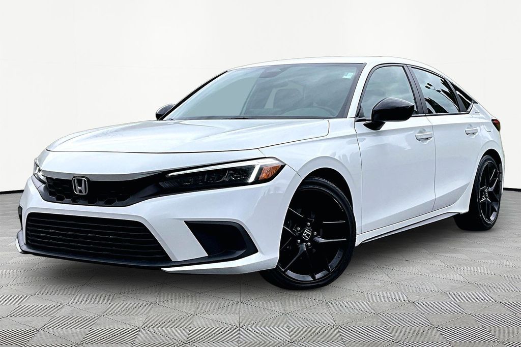 Platinum White Pearl 2023 Honda Civic Sport FWD CVT 2.0L I4 DOHC 16V Bluetooth, Backup Camera, Apple Carplay, Android Auto, Black w/Fabric Seating Surfaces.