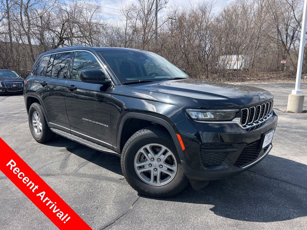 Includes 10 Year/150,000 Mile Warranty, Discover bold design, modern capability, and everyday comfort in this 2023 Jeep Grand Cherokee Laredo, now available at Umansky Toyota Milwaukee. Finished in sleek Diamond Black Crystal Pearl and paired with a refined Global Black interior, this midsize SUV delivers a perfect balance of rugged Jeep performance and upscale refinement. The Grand Cherokee Laredo offers a smooth, confident ride along with advanced technology, including a large touchscreen infotainment system with Apple CarPlay® and Android AutoTM, Bluetooth® connectivity, and a full suite of driver-assist safety features for added confidence on Milwaukee roads. Inside, you’ll find a spacious and comfortable cabin with premium materials and versatile cargo space to handle daily commutes or weekend adventures with ease. With its iconic styling, dependable capability, and modern features, this 2023 Jeep Grand Cherokee Laredo at Umansky Toyota Milwaukee is an excellent choice for drivers seeking a well-rounded and stylish SUV!, Power Sunroof, Black MOPAR Side Steps, Blind Spot Detection Blind Spot, 4WD, Alloy wheels, ParkView Rear Back-Up Camera, Power driver seat, Power Sunroof, Quick Order Package 23A Laredo, Radio: Uconnect 5 w/8.4" Display, Wheels: 17" x 6.5" Fully Painted Aluminum.