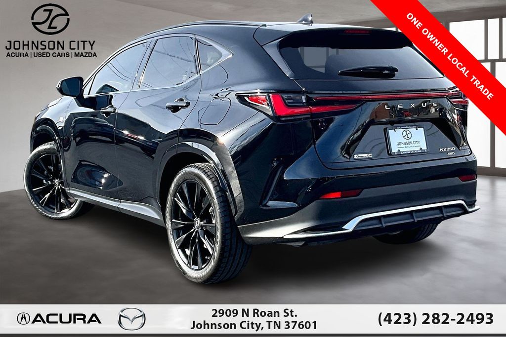 Clean CARFAX. 2023 Lexus NX 350 F SPORT Handling Obsidian Fully serviced, Local Trade!, CARFAX One Owner!, 10 Speakers, 20" Wheels, Adaptive suspension, Alloy wheels, Aluminum Door Trim, Auto Dynamic Headlamp Leveling, Auto High-beam Headlights, Auto Rain Sensing Windshield Wipers, Auto tilt-away steering wheel, Auto-dimming door mirrors, Auto-dimming Rear-View mirror, Automatic temperature control, Delay-off headlights, Exterior Parking Camera Rear, F SPORT Handling Package, F SPORT NuLuxe Seat Trim, F SPORT Steering Wheel, Four wheel independent suspension, Front Door Courtesy Lamp, Front fog lights, Fully automatic headlights, Garage door transmitter: HomeLink, Heads-Up Display, Heated door mirrors, Heated Front Bucket Seats, Illuminated entry, Leather Shift Knob, Navigation system: Drive Connect Cloud Navigation (subscription required), Outside temperature display, Parking Support Alert/Brake, Power door mirrors, Power driver seat, Power steering, Power Steering Column, Power Tilt & Slide Moonroof/Sunroof, Power windows, Radio: 10-Speaker Sound System, Rain sensing wipers, Rear window defroster, Remote keyless entry, Single Color Illumination, Speed-sensing steering, Speed-Sensitive Wipers, Spoiler, Sport steering wheel, Steering wheel mounted audio controls, Telescoping steering wheel, Tilt steering wheel, Traction control, Turn signal indicator mirrors, Wireless Apple CarPlay/Wireless Android Auto. 4D Sport Utility AWD 2.4L I4 DOHC 16V 8-Speed Automatic