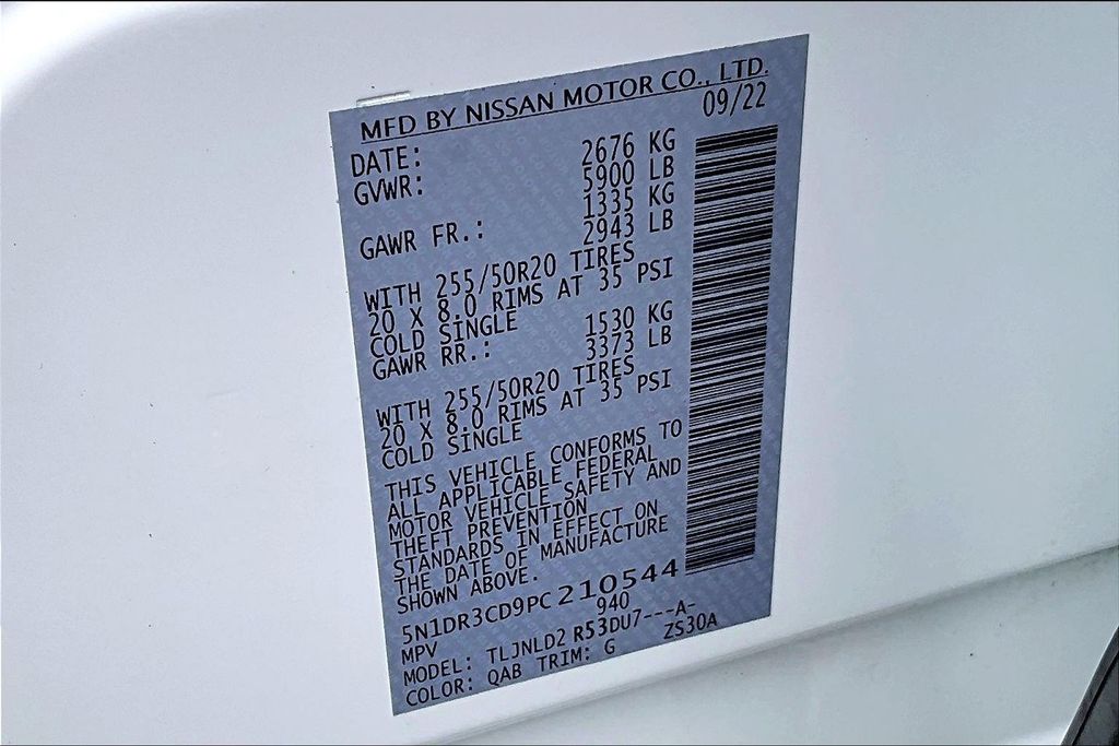 SL Premium Package (20" Painted Alloy Wheels, 2nd-Row Captain Chairs, 2nd-Row Removable Center Console, Bose Premium Audio System, Heated Rear Seats, Panoramic Moonroof, and Tow Hitch Receiver & Harness), 18" Machined Alloy Wheels, 3rd row seats: bench, 4-Wheel Disc Brakes, 6 Speakers, ABS brakes, Air Conditioning, Alloy wheels, AM/FM radio: SiriusXM, Auto High-beam Headlights, Auto-dimming Rear-View mirror, Automatic temperature control, Axle Ratio: 4.334, Black Splash Guards (Set of 4), Brake assist, Bumpers: body-color, Captain's Chairs Carpeted Floor Mats (Set of 4), Cross Bars, Delay-off headlights, Driver door bin, Driver vanity mirror, Dual front impact airbags, Dual front side impact airbags, Electronic Stability Control, Emergency communication system: NissanConnect Services, Exterior Parking Camera Rear, Four wheel independent suspension, Front anti-roll bar, Front Bucket Seats, Front Center Armrest, Front dual zone A/C, Front reading lights, Fully automatic headlights, Garage door transmitter: HomeLink, Heated door mirrors, Heated Front Bucket Seats, Heated front seats, Heated steering wheel, Illuminated entry, Knee airbag, Leather Seating Surfaces, Leather steering wheel, Low tire pressure warning, Navigation system: NissanConnect Navigation, NissanConnect w/Navigation & Services, Occupant sensing airbag, Outside temperature display, Overhead airbag, Overhead console, Panic alarm, Passenger door bin, Passenger vanity mirror, Power door mirrors, Power driver seat, Power Liftgate, Power passenger seat, Power steering, Power windows, Radio data system, Radio: AM/FM Audio System, Rear air conditioning, Rear anti-roll bar, Rear reading lights, Rear seat center armrest, Rear side impact airbag, Rear window defroster, Rear window wiper, Reclining 3rd row seat, Remote keyless entry, Security system, Speed control, Speed-sensing steering, Split folding rear seat, Spoiler, Steering wheel mounted audio controls, Tachometer, Telescoping steering wheel, Tilt steering wheel, Traction control, Trip computer, Turn signal indicator mirrors, and Variably intermittent wipers.